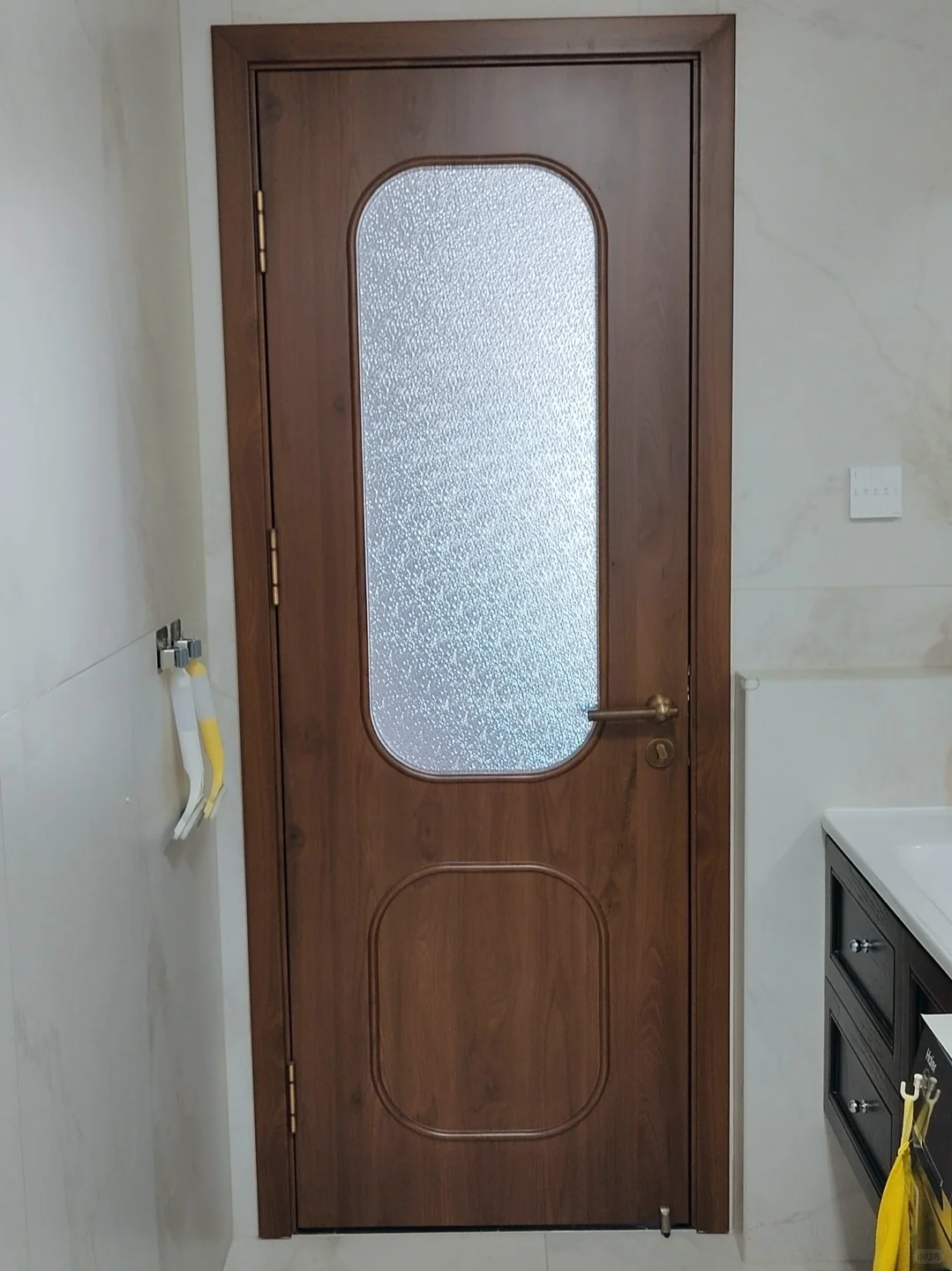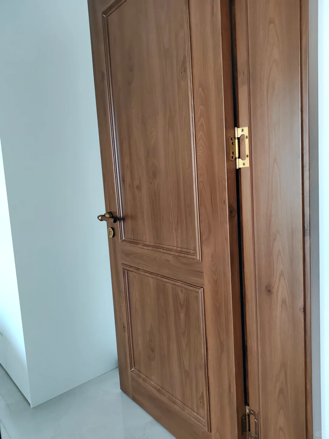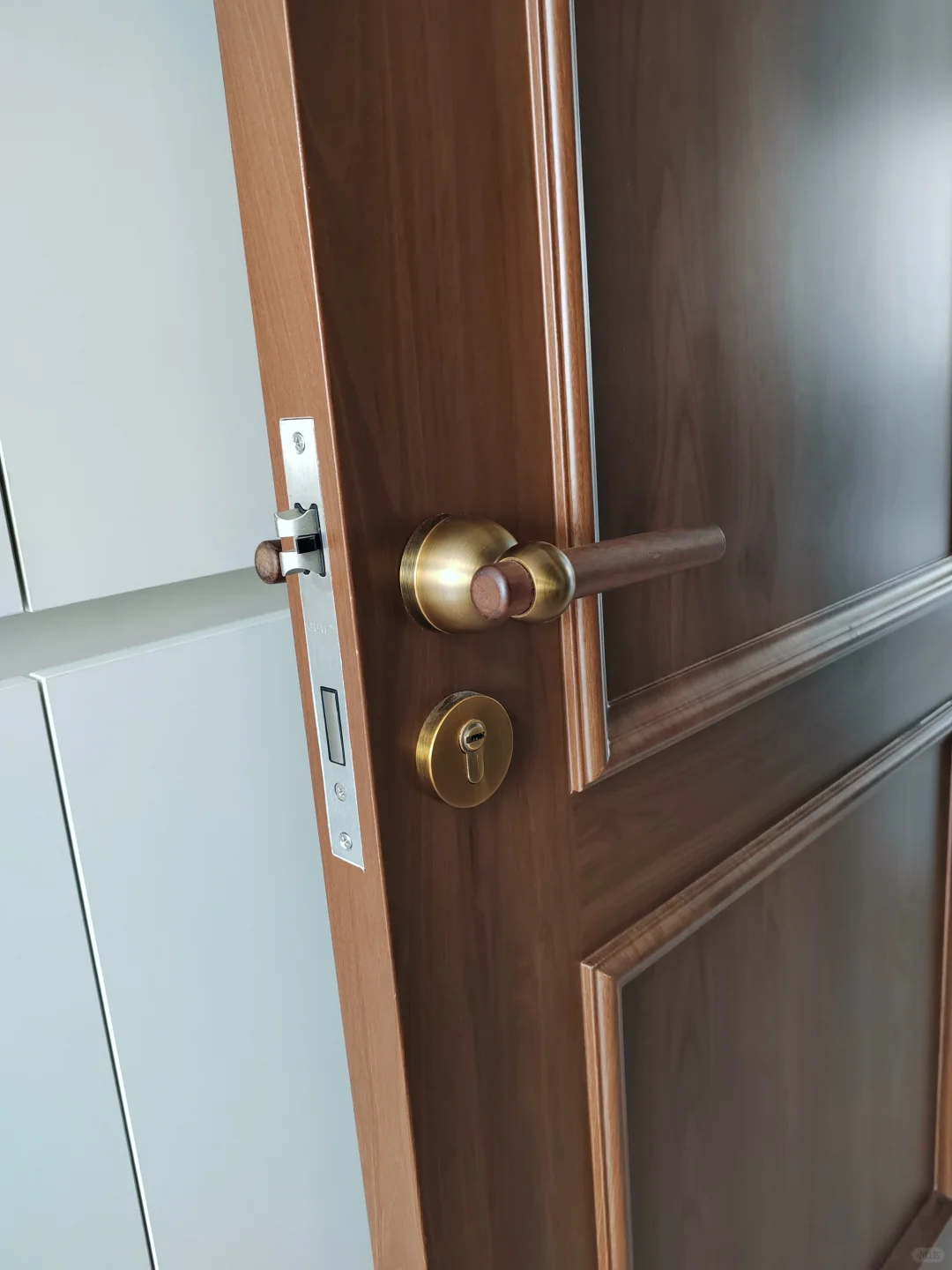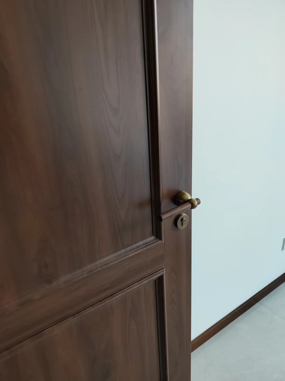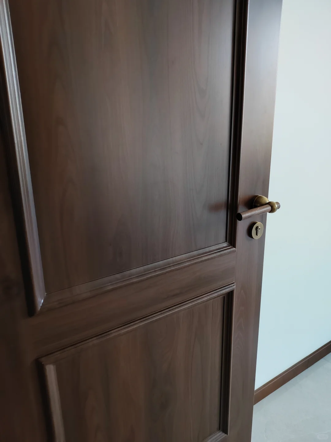 不想将就,自己网购了胡桃木+古铜色的门把手