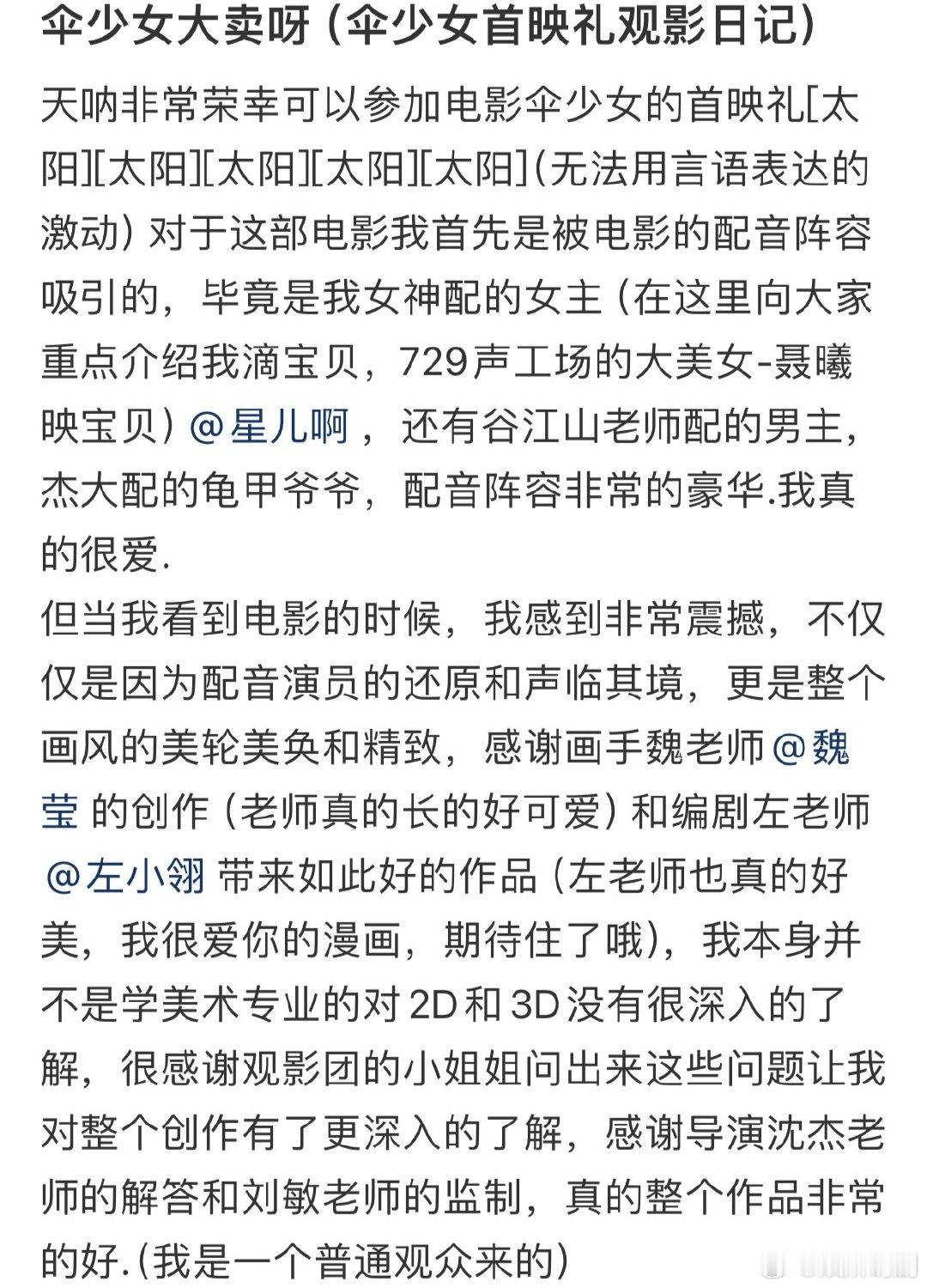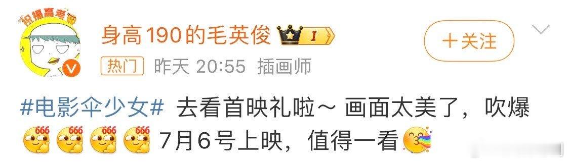 #国漫集结为伞少女打call##电影伞少女今日上映# 哇塞!当看到《大鱼海棠》《刺客伍六七》《茶啊二中》《深海》《昨日青空》等这些经典国漫为伞少女集结打 call 时,内心的激动简直难以言表!伞少女那绝美的画风,今日上映必须去全力支持