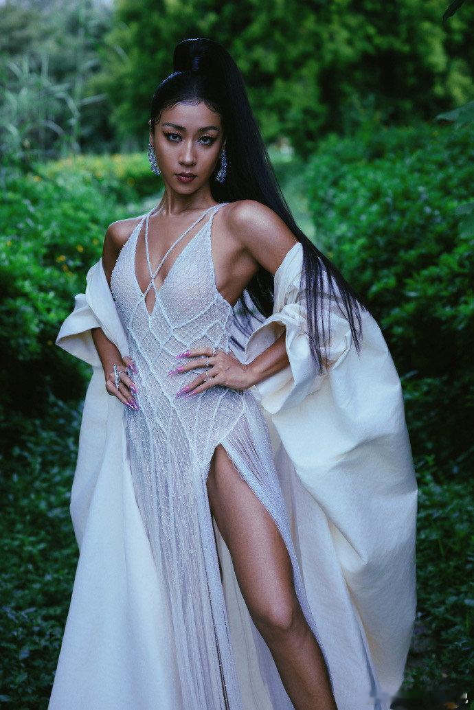 #吉克隽逸白色网格镂空吊带裙#纯白网格镂空吊带裙,为吉克隽逸的健康肤色添上一抹不可抗拒的诱惑。吊带轻轻搭在肩头,既显露出优雅的肩颈线条,又透露出一种不言而喻的力量感。这样的她,怎能不让人心动?