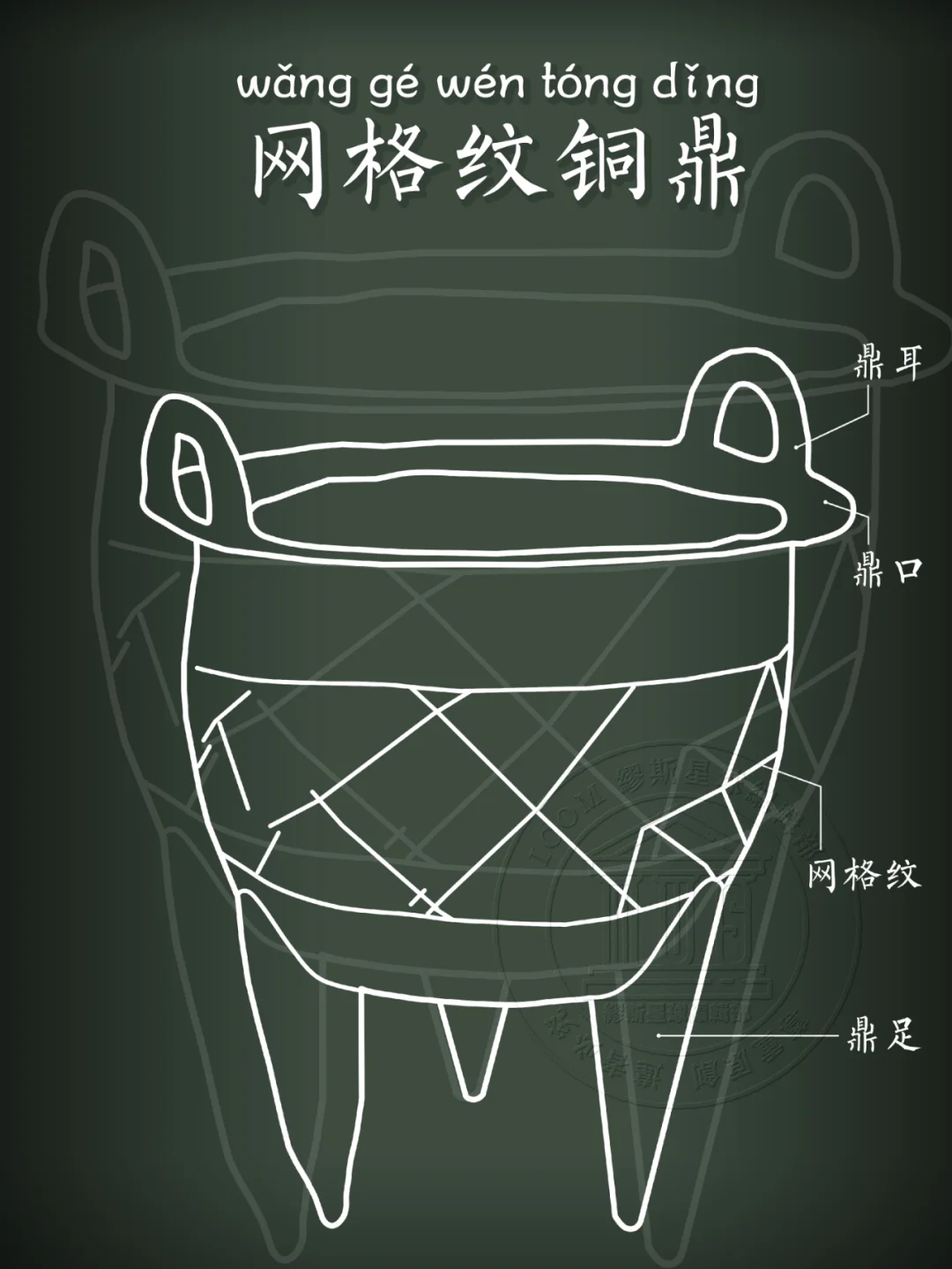 📍夏网格纹鼎是一件铜鼎文物,1987年河南偃师二里头出土,是迄今为止中国考古发现最早的青铜鼎,也是王权礼制萌芽的象征。