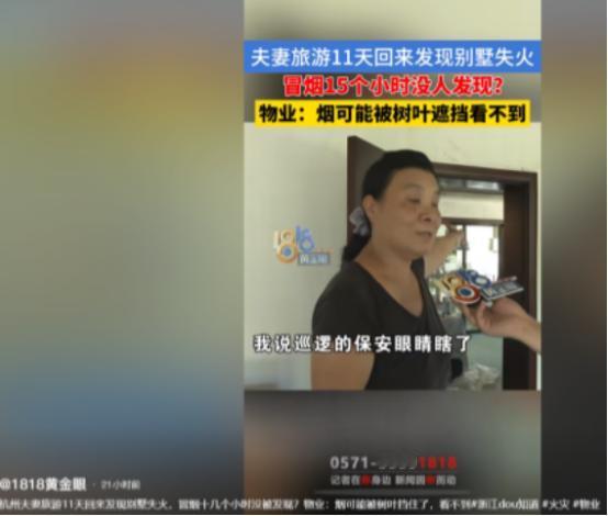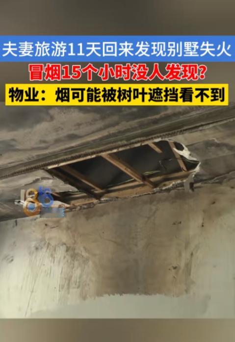 “离了个大谱!”杭州一对夫妻出门旅游11天,临走前还特意交代物业“多多关照”自己在富阳区的别墅,没想到自家别墅连烧15个小时都没人管!物业回应“烟可能被树叶遮挡看不到!” “那么大的火烧了十几个小时,你们说没看见谁信呀,我一个月给你们交着上万元的物业费,究竟是干嘛用的”,赵女士对着物业的管理人员说到。 如果是一点点小火物业没发现可以说的过去,但是这个火势已经将赵女士家的别墅给烧的啥都不剩了,这再说看不见可就是眼瞎了吧。 (信息来源:1818黄金眼 2024-07-30 杭州夫妻旅游11天回来发现别墅失火,冒烟十几个小时没被发现?) 当初赵女士在网上看到一则关于旅游宣传的视频,便和自己的丈夫商量着,趁着还没有七老八十想出去走走看看,不然再过几年想去身体也不允许了。 丈夫也是很同意她的想法,两个人便开始做计划收拾东西准备出发,当天出门后赵女士还想到自己家里的总电闸没关。 本来她还想着拐回去给她关了,但是转念一想她想到如果一关,家里冰箱里的各种食材和肉都得坏掉,所以她决定不关了,可是就是这个决定,让她的别墅没有了。 赵女士和她的丈夫在外游玩11天回到家的时候,远远的就发现自己家整个看起来乌漆嘛黑的。 她们不敢相信地往前走去,每往前走一步眼前的景象就更真实,知道她们两位已经站在自己家门前了,还是一脸懵的不敢相信。 她们当初花200万装修的美美的家,在他们外出旅游的11天里变成了一片废墟,但是这个情况没有任何人给他们说。 物业也没有跟他们打个电话什么的,因为在出发当天,赵女士还专门跑到物业那里,给他们说了自己一家要出门,让物业多操心一下有什么问题的话第一时间联系自己。 但是在这期间物业并没有任何的举动,赵女士找到物业索要说法的时候,物业则表示她们没有发现。 赵女士就纳闷了按照正常情况,物业每天都有按时巡逻,不可能会出现这么大火看不见的情况。 当赵女士要求查看监控的时候才发现,这个火势一直持续的烧了15个小时,物业根本没有人去她们家附近的那一片巡逻,不然不可能这么长时间都没被发现。 但是这时候物业依旧在狡辩说,是因为小区太大,加上绿化的面积也很大,才没能及时发现着火。 整个过程物业都在来回逃避这个问题,毕竟火势那么大,就算看不见也总能闻到味道吧。 这件事在网上传开后,网友们纷纷表示像物业不负责任的情况常有发生,收了住户的钱,到头来还不办实事。 还有网友疑惑这么大的火势,小区怎么能没有一个人看到,究竟事怎么回事。 最重要的是用电问题确实要注意,一不小心就会酿成没办法弥补的错误,对于这样的事情各位有什么看发呢?