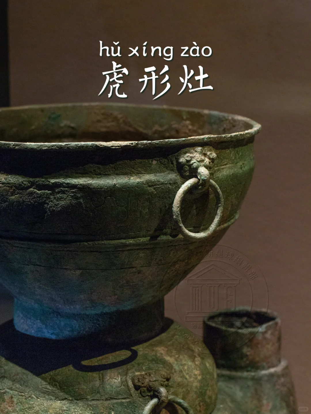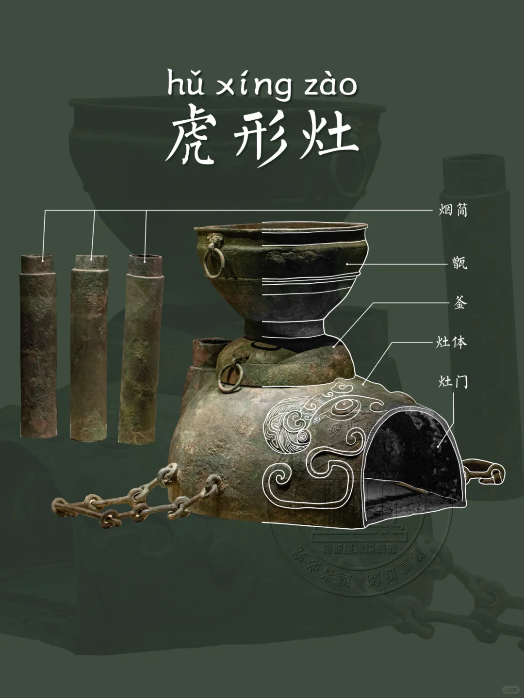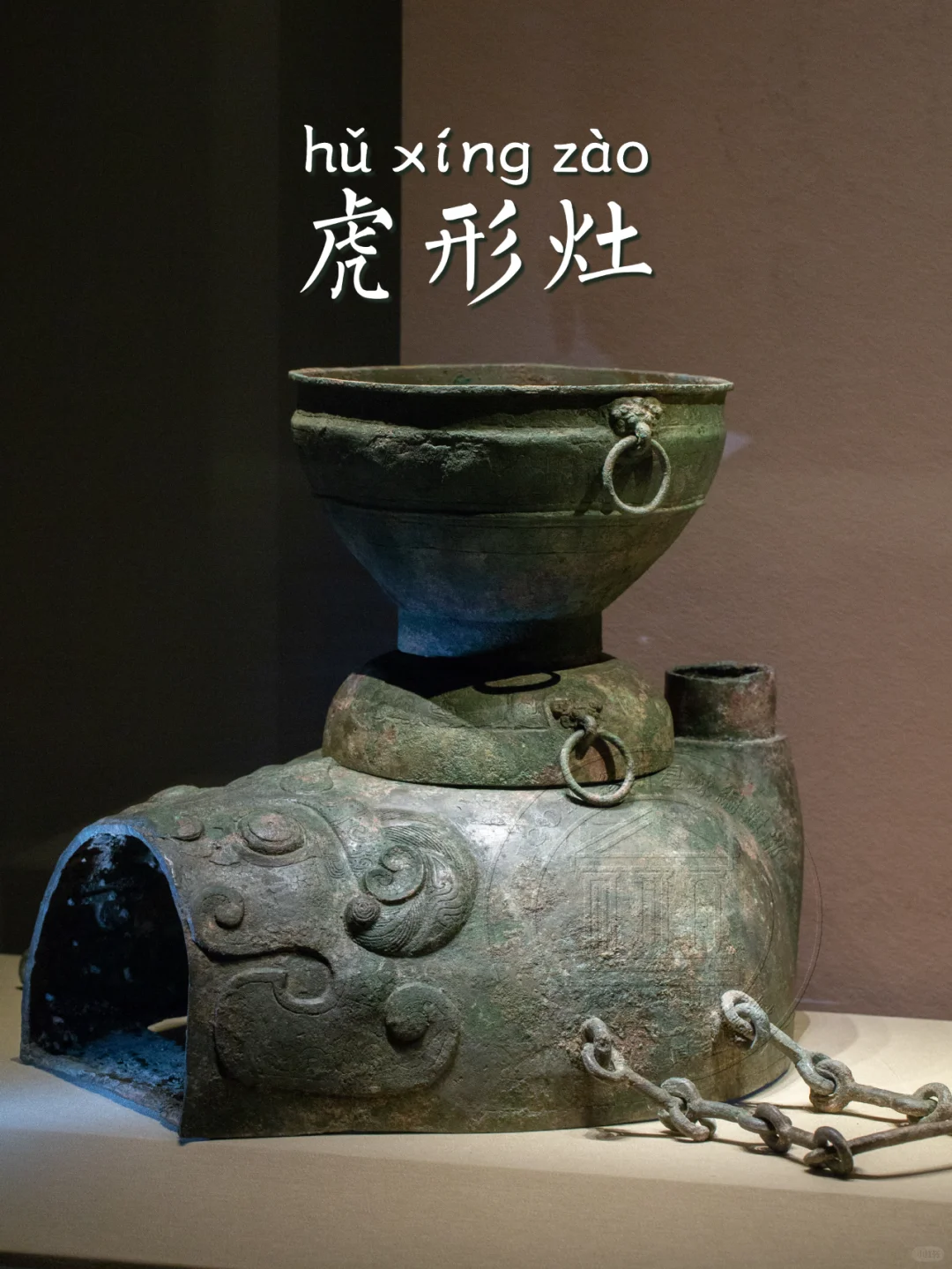 📍因其底部添加燃料的入口被雕刻成了虎头的造型,烟囱又好似老虎的尾巴而得名。是古人行军作战、外出游猎时随身携带的烹饪、取暖器具。