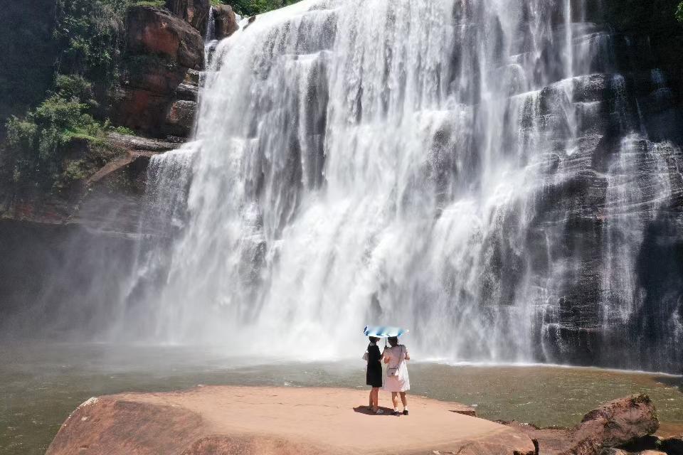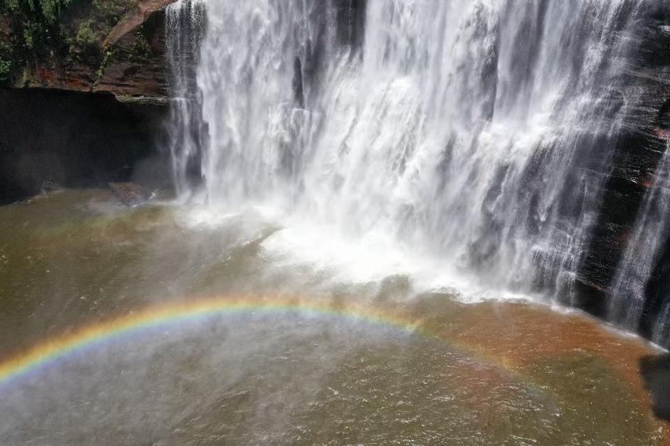 赤水大瀑布,水势浩大,阔大壮美,七色彩霞,美不胜收 我在贵州等你来#赤水丹霞大瀑