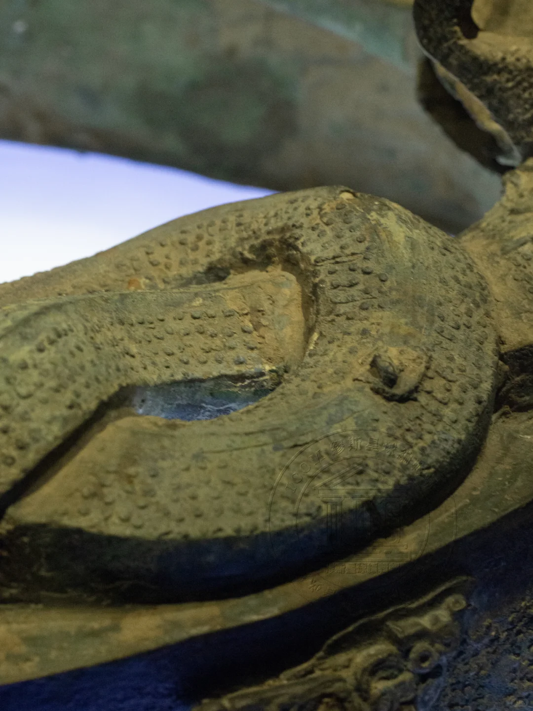 📍龙虎纹鼓座的外侧上方,铸有两周铭文,约150个字,出土时锈蚀严重、模糊不清学者对鼓座铭文解读,发现其反映舒国军事行动及与周边国家关系。鼓座为舒国文化产物,体现舒国自主意识增强,并揭示时局混乱。对鼓座研究对理解舒国历史及安徽地区方国文化有重要意义。