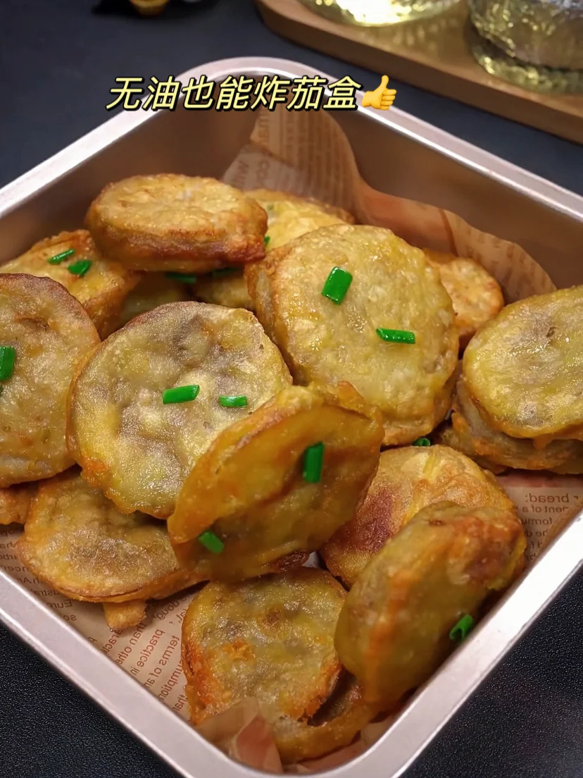 空气炸锅炸半成品茄盒也太好吃了吧!!