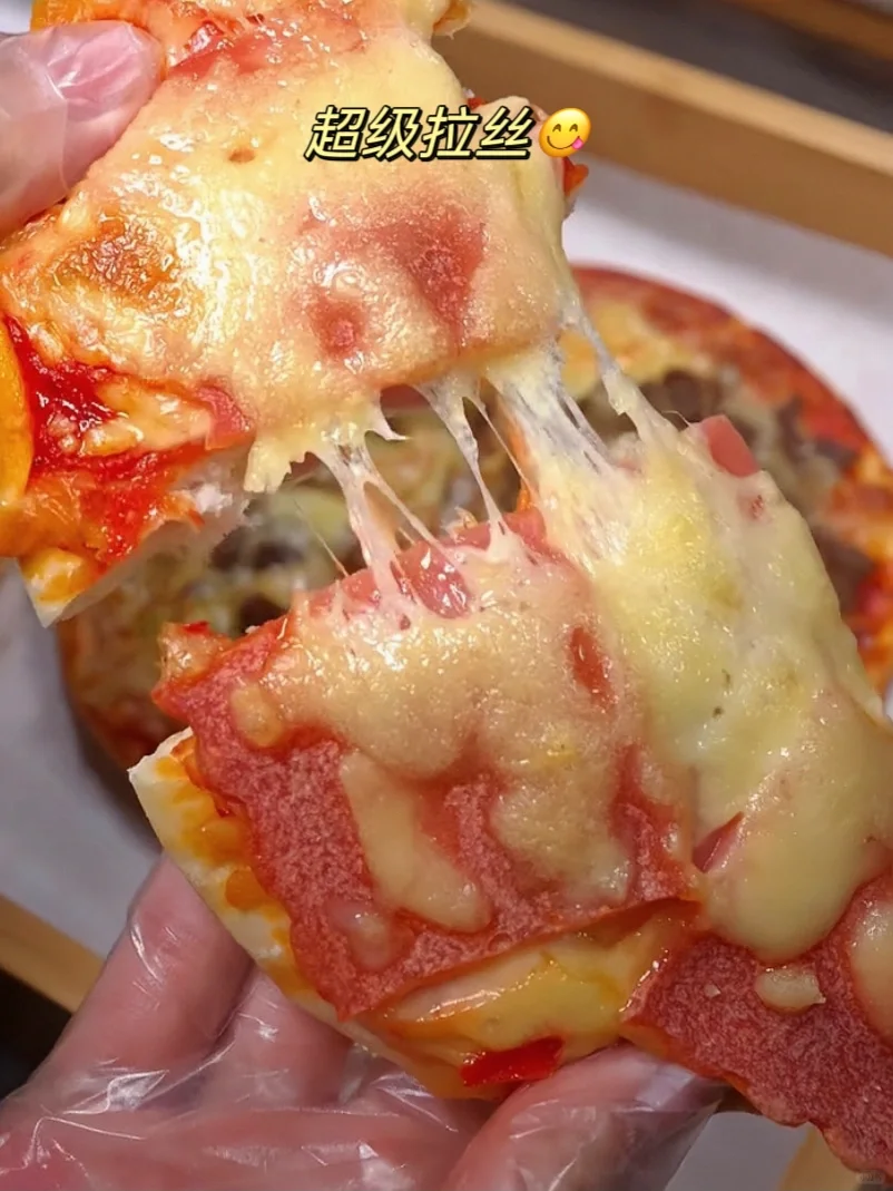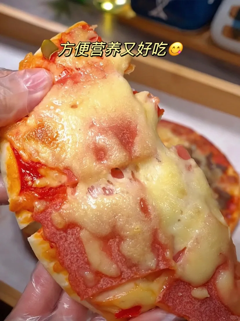 这个半成品披萨🍕意外的好吃啊啊! ! 饼皮贼酥脆! !料贼多~芝士还能拉丝!一口满足! 空气炸锅180度8分钟即可 做法贼简单呀! !还去啥披萨店! !