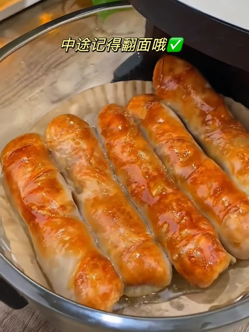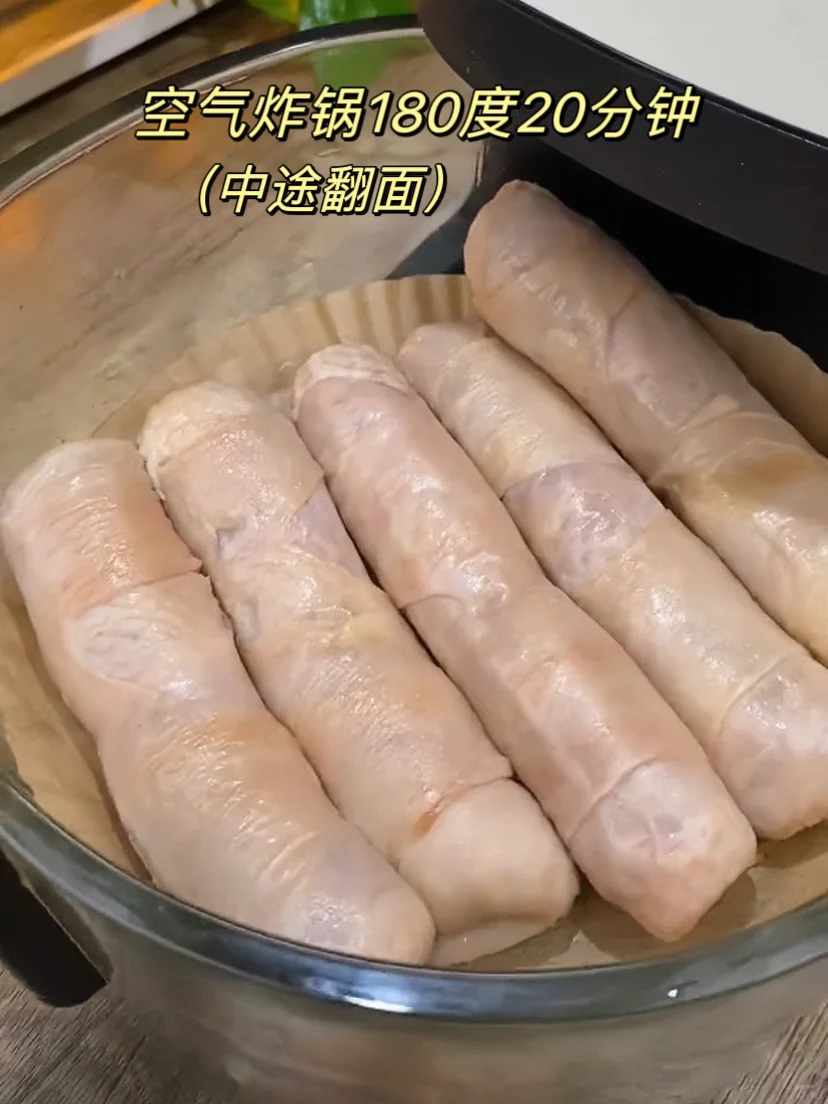 空气炸锅半成品爆汁鸡腿卷!巨巨巨好吃😋