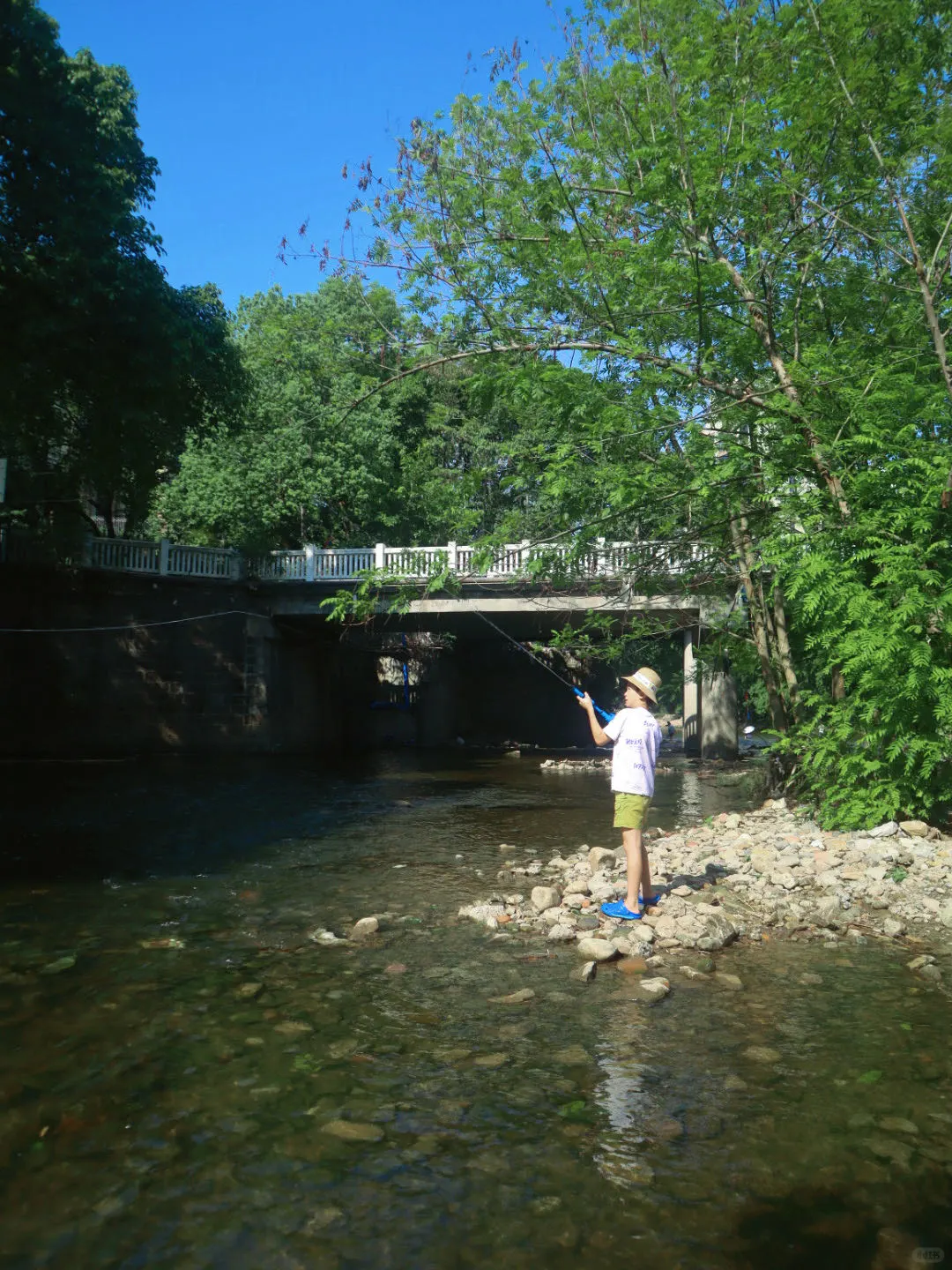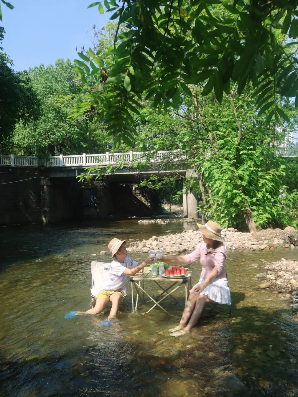 这里就在主城区,不用开车远行,小河沟里的水清澈见底,碧绿如玉,不时还有河风吹过!真的好凉快,我们选择在树荫下的河沟里,吃着水果🍉喝着天友鲜奶🥛,真的很惬意,这里人少还免费,🉑尽情地玩水、钓鱼🎣、搬螃蟹🦀……真滴是绝了!