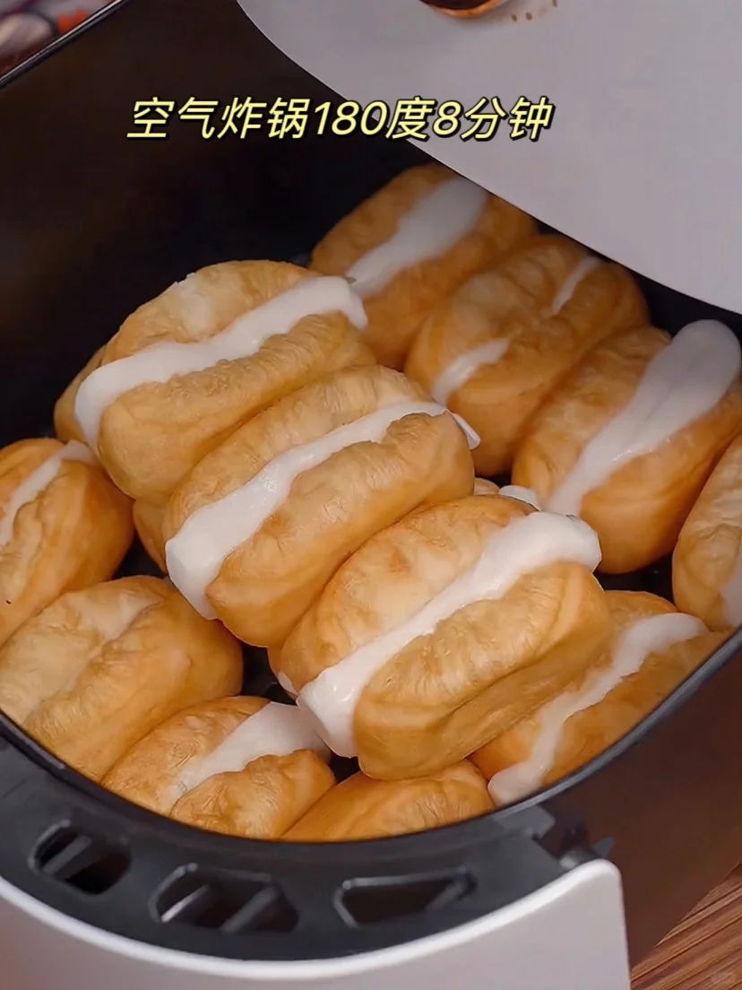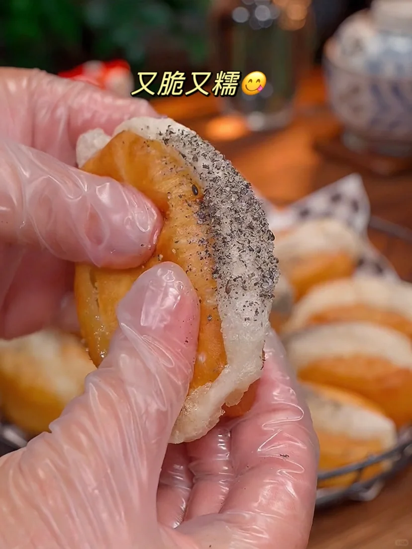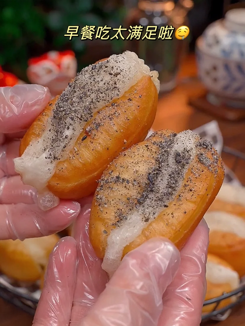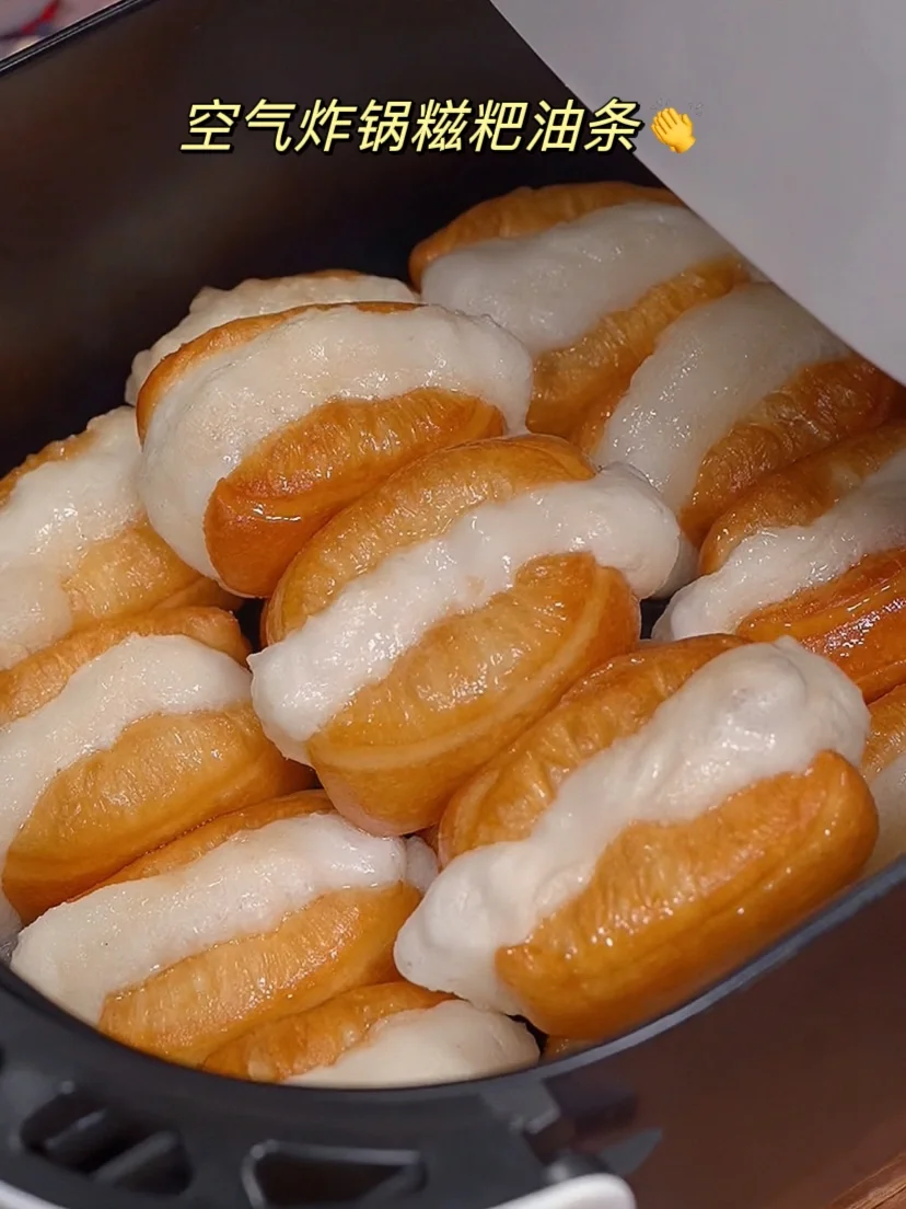空气炸锅油条麻糍,糯叽叽泰好吃啦!一口一个,也不怕浪费,脆脆的油条包裹着糯糯的糍粑,搭配黑芝麻碎, 早餐吃真是太满足了!