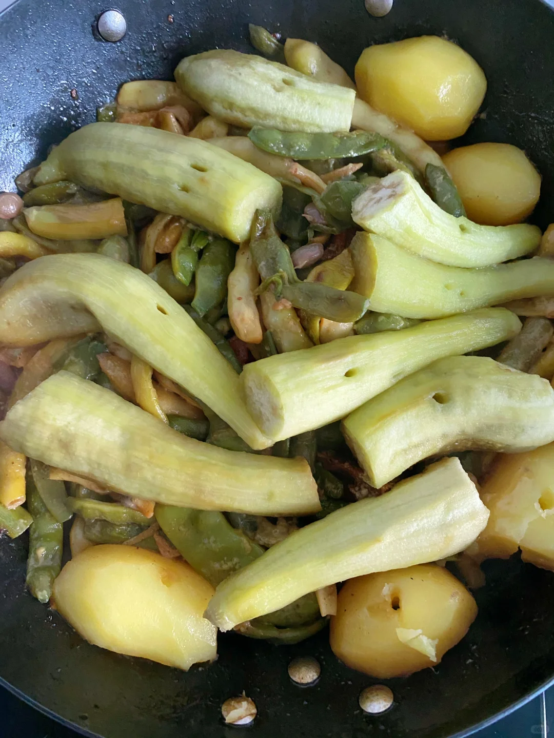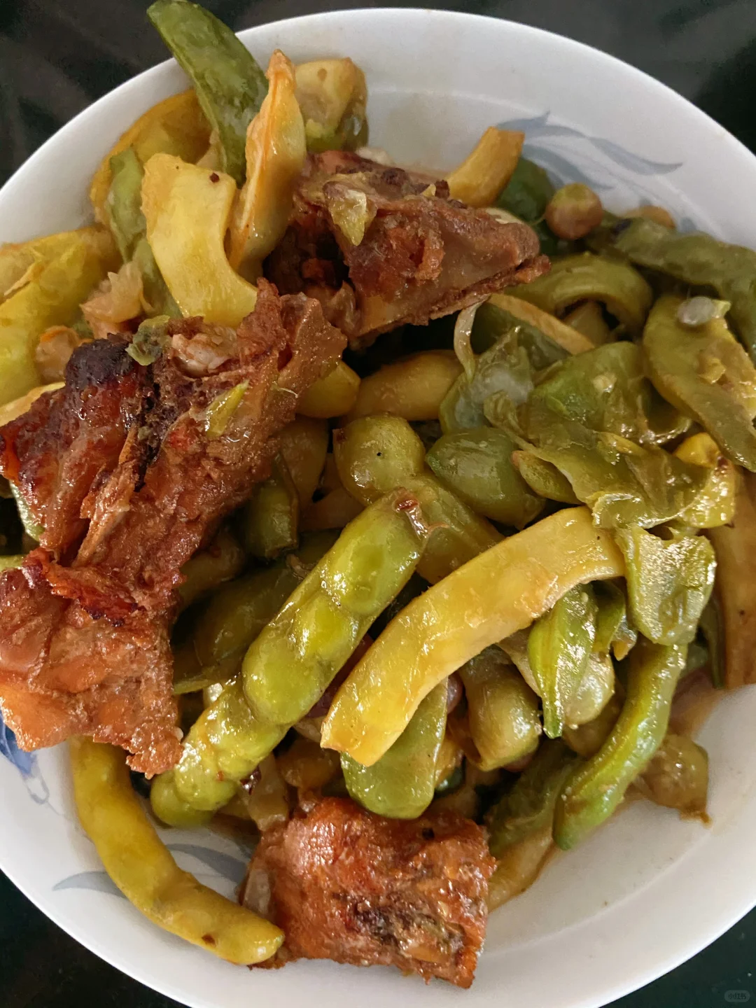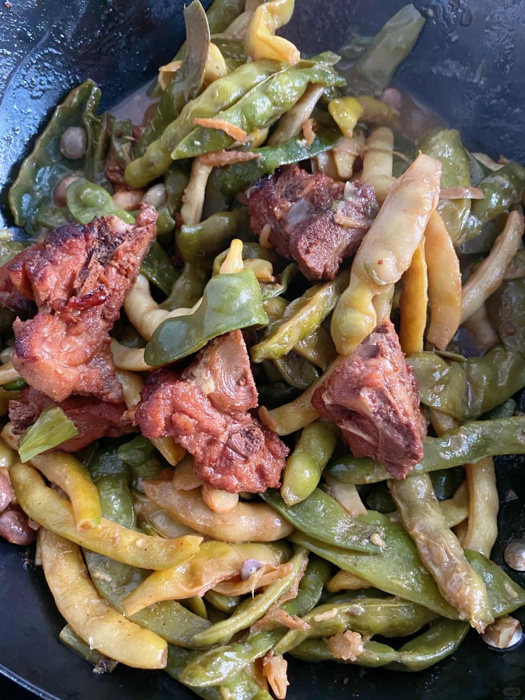 今天晚饭吃东北一锅出,排骨,豆角,茄子,土豆🥔[派对R][派对R][派对R]