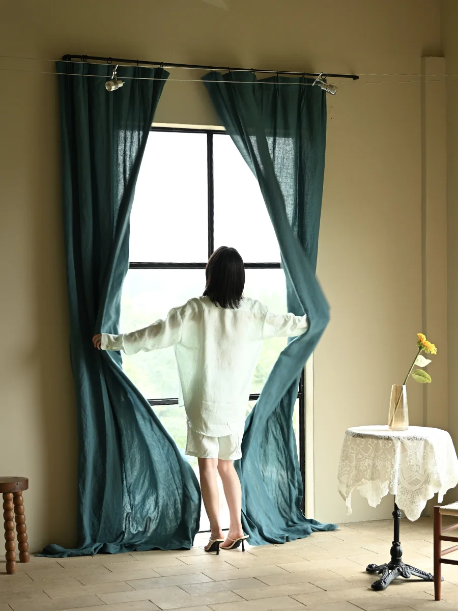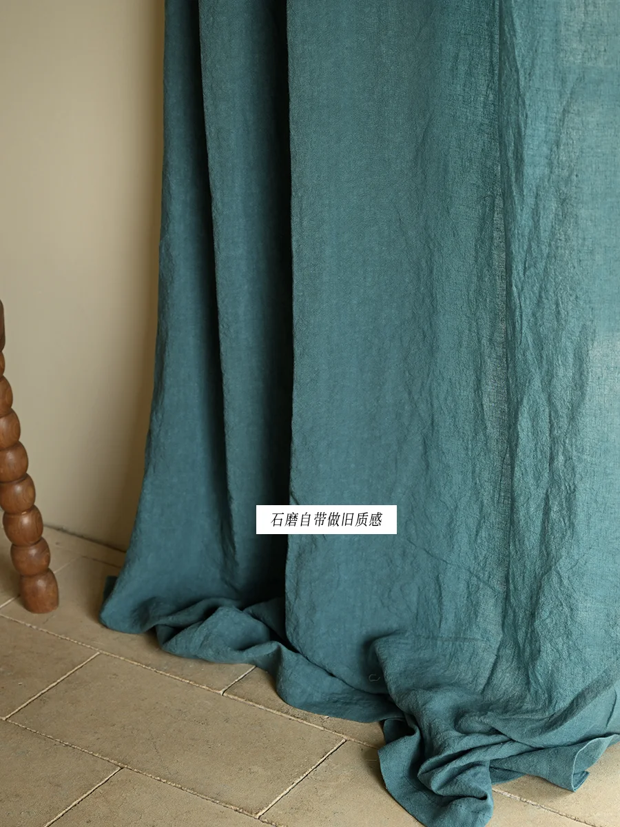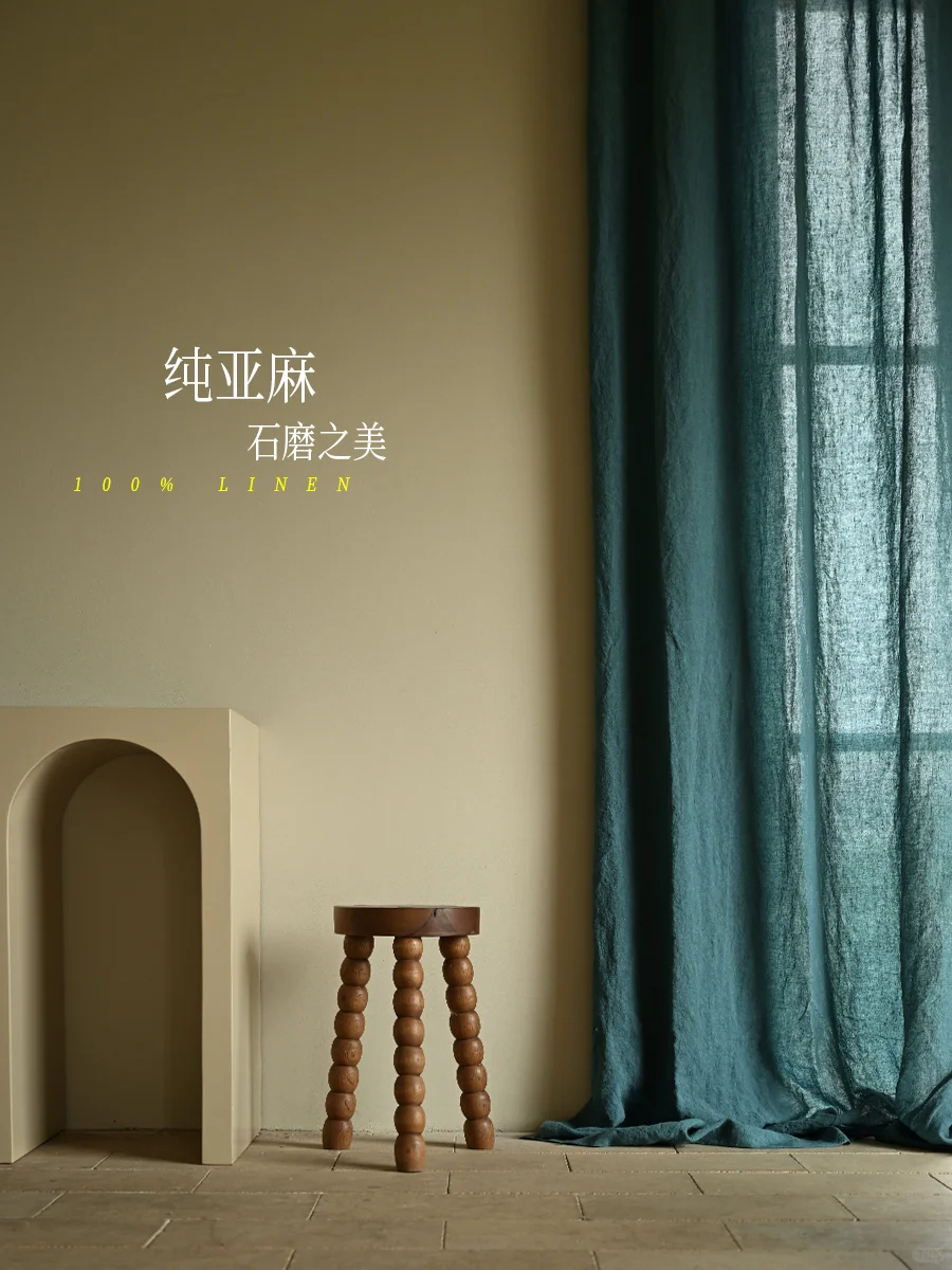 本原亚麻布艺 纯亚麻窗帘 蓝色窗帘