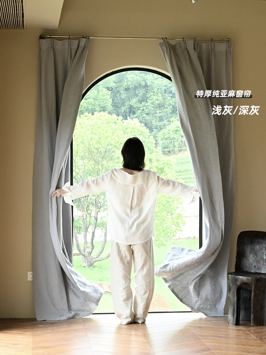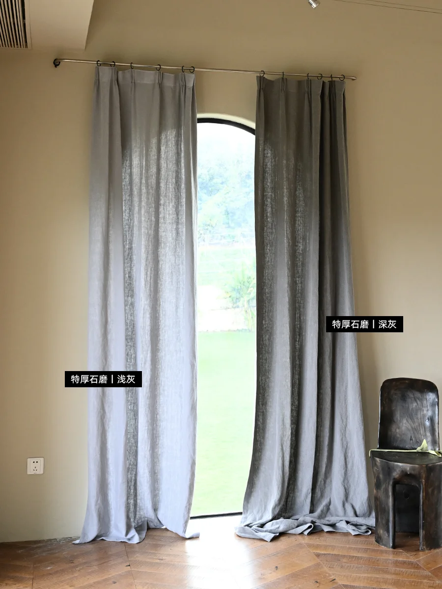 特厚纯亚麻窗帘丨石磨工艺丨浅灰&灰