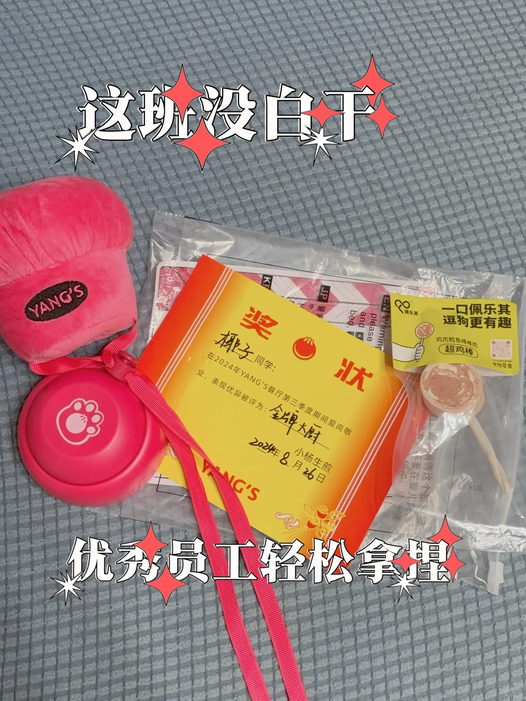 恭喜椰子!完成了小杨的一日考核!得到了金牌大厨的奖状!希望可以保持喔,争取早日转正,能够替换妈妈酱成为家里的食物管理员!