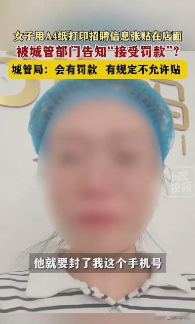 内蒙古乌兰浩特,女子在自己店门口的玻璃上张贴招聘信息,却被城管罚款!不交罚款就会被封手机号!女子哭诉说:“怎么不给人留活路啊,我在自己店里的玻璃上贴A4纸大小的招聘信息招谁惹谁了?” 招工启事,街头巷尾随处可见,本是再普通不过的事。怎么就和罚款扯上关系了?这事儿还得从一位女店主说起。她店里缺人手,想着招个人,就在自家店门口的玻璃上贴了张A4纸,上面打印着招聘信息。本以为招工信息一贴,就能等到合适的员工,谁知等来的却是城管的“罚单”。 (来源:今视频长天新闻) 城管说她违反了相关规定,需要清除“广告”并接受处罚。女子当然懵了,只是一张简单的招工启事,怎么就成了“广告”?而且,自家门口贴张纸,又怎么就影响市容市貌了?面对女子的质疑,城管的态度却很强硬,表示如果不服从管理,就要对她进行处罚,甚至还要封掉她的手机号。 对于这位女店主来说,被罚款事小,但这种“欲加之罪”的感觉却让人心里堵得慌。精细化管理固然重要,但也要注意方式方法,更要有人情味。一个充满温度的城市,应该是既有秩序,又有活力,既能包容多元,又能让人感受到温暖的。 城市管理者要跳出“管理者”的角色,把自己当成城市的“服务员”,真正做到想群众之所想,急群众之所急。政策制定和执行过程中,更要多倾听民意,多体察民情,让法律法规更接地气,更有温度。 当然,我们也不能忽视法律法规的严肃性和权威性。任何时候,都不能以“人情”代替法律,也不能因为“灵活”而失去原则。这就要求我们在制定和执行城市管理规定时,要更加注重人性化和合理性,既要维护公共利益,也要兼顾个人权益。 在这起事件中,如果相关规定明确了哪些地方可以张贴招聘信息,哪些地方不能张贴,并且在日常管理中加强宣传引导,或许就能避免类似事件的发生。再比如,对于一些轻微的违规行为,可以先进行口头警告,如果屡教不改,再进行处罚,这样既能起到教育作用,也能体现执法的温度。 城市是大家的城市,城市管理也需要大家共同参与。无论是管理者还是被管理者,都应该树立起“主人翁”意识,共同维护好我们的城市家园。对于管理者来说,要多一些理解和包容,多一些服务意识,让城市管理更有温度、更有力量;对于市民和商家来说,要自觉遵守城市管理规定,积极配合城市管理工作,共同营造一个干净、整洁、有序、和谐的城市环境。 城市管理,需要更多的人文关怀。在法律法规的框架下,如何找到“法”与“情”的平衡点,如何让城市管理既有“力度”又有“温度”,是我们需要不断探索和努力的方向。