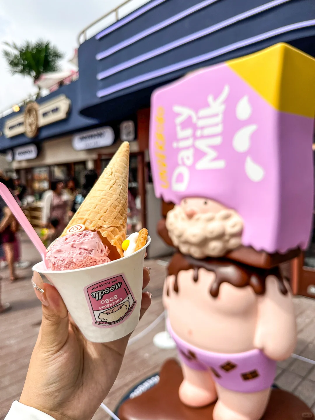 真的没人能空手从这家店走出去!! 安德伯伯变身🍫甜甜巧克力牛奶盒 T恤、手办、各种周边…都可可爱爱的 冰淇淋好吃又好拍 萌化咯~