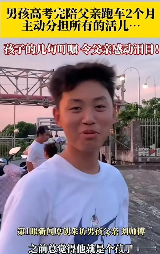四川,男孩在高考后主动提出跟着货车司机的父亲跑车!两个月后,男孩更加感受到父亲的不易,收到录取通知书后,他反复地叮嘱父亲以后一个人开车注意安全,要记得按时吃饭,把父亲感动得泪流满面!父亲:儿子长大了,值了! 刚参加完高考的小刘正帮父亲刘伟一起盖货车篷布,汗水浸透了他的T恤,但他脸上却洋溢着笑容。高考结束后的暑假,本该是孩子们放松玩乐的时光,小刘却选择跟着父亲跑长途货运。网友们纷纷点赞,称赞小刘孝顺懂事,这段父子情也感动了无数人。 (参考资料:大象新闻《8月20日,男生高考后陪父亲跑车两个月,一路上承担力所能及的活,父亲:孩子收到录取通知书后还叮嘱我,以后一个人开车注意安全,记得按时吃饭》) 刘伟常年驾驶着一辆重型货车,奔波在全国各地的高速公路上。对他来说,货车就是他的另一个家。方向盘磨得发亮,车厢里永远弥漫着一股淡淡的烟草味,那是他日复一日奔波的见证。刘伟为人老实,话不多,但吃苦耐劳,是家里的顶梁柱。他常年在外跑车,为的就是能让妻儿过上更好的生活。 儿子小刘今年参加高考,刘伟嘴上不说,心里却一直牵挂着。他盼着儿子能考个好大学,将来找个好工作,不要像自己一样辛苦。但他心里也清楚,自己常年在外,陪伴家人的时间少之又少,对儿子的关心和教育也不够,这份亏欠一直压在他心头。 高考前夕,刘伟鼓起勇气问儿子,考完想去哪玩,他好提前安排时间。没想到儿子却说:“爸,我想跟你去跑一趟长途。”这个请求让刘伟措手不及,他惊讶之余更多的是犹豫。跑长途又苦又累,风餐露宿,他怎么舍得让儿子吃这份苦? 小刘的这个决定,其实早就在他心中酝酿已久。从小到大,父亲在他心中一直是高大、沉默的形象。他很少和自己谈心,父子俩的交流少得可怜。他知道父亲爱他,但这份爱总是隔着一层。这些年,他目睹了父亲的辛苦和不易,也渐渐理解了父亲深沉的爱。 高考结束后,小刘决定用这个暑假来弥补这些年的遗憾。他想要走近父亲,了解他的工作和生活,也想用自己的方式为父亲分担一些压力。 于是,小刘毅然决然地踏上了这趟未知的旅程。他帮父亲整理货物、盖篷布、擦洗车身……这些活对从小在城市里长大的他来说既新鲜又陌生。夏日的骄阳炙烤着大地,车厢里闷热难耐,小刘却毫无怨言,他用行动证明了自己的决心。 一路上的风景在眼前飞逝,车厢里也渐渐热闹起来。父子俩从最初的陌生、沉默,到后来无话不谈。他们聊学习、聊工作、聊人生,曾经的隔阂在不知不觉中消融。刘伟第一次向儿子吐露了自己的心声,他谈起自己年少时的梦想,谈起这些年跑车的辛酸,也谈起对未来的期许。 小刘这才发现,原来父亲的内心也有如此柔软的一面。他也明白了,父亲的爱不是甜言蜜语,而是默默付出和守护。录取通知书的到来,为这段特殊的旅程画上了句号。即将分别之际,父子俩心中都充满了不舍。临行前,小刘反复叮嘱父亲要注意安全,照顾好自己。看着儿子日渐成熟的脸庞,刘伟眼眶湿润了。他知道,儿子真的长大了。 刘伟父子俩的故事在网络上引起了热议,网友们纷纷为这对父子点赞。小刘的感恩之心和吃苦耐劳的精神,正是当代年轻人身上难能可贵的品质。而刘伟用实际行动为儿子树立了榜样,也体现了言传身教的重要性。 这段货车上的暑假,是父子二人爱的双向奔赴。它不仅拉近了父子之间的距离,也让小刘在成长路上收获了宝贵的财富。小刘步入大学校园,开启人生新的篇章,而父子之间的爱和牵挂,将成为彼此前进的动力。