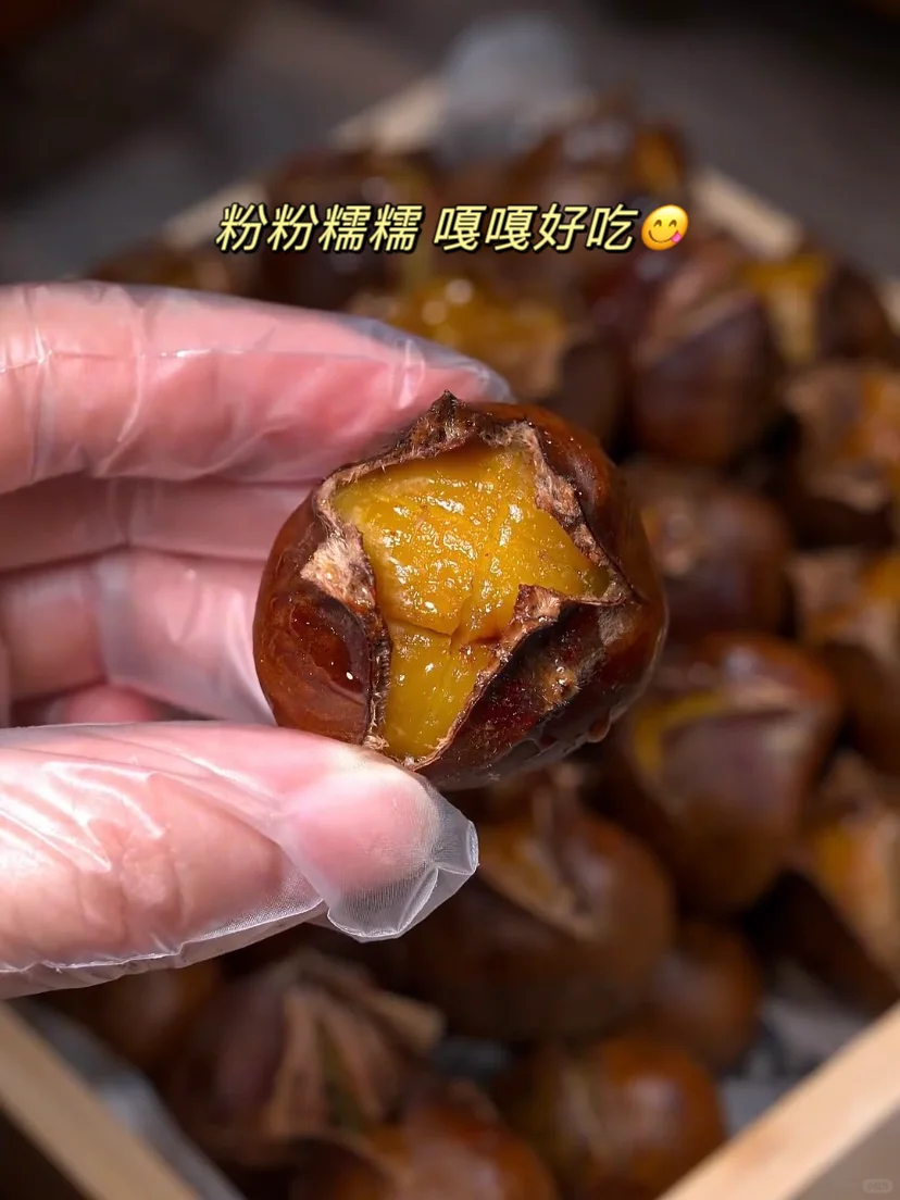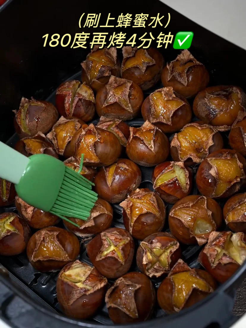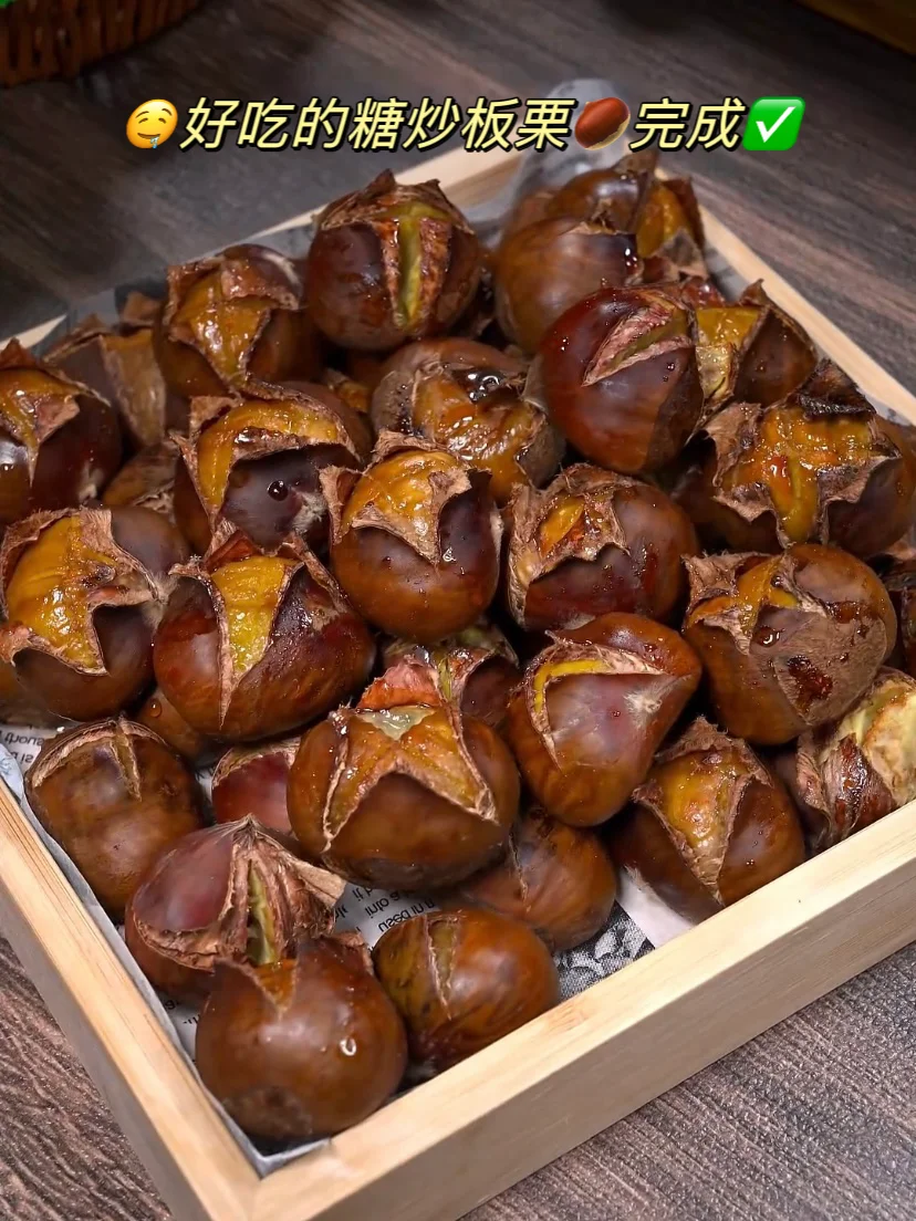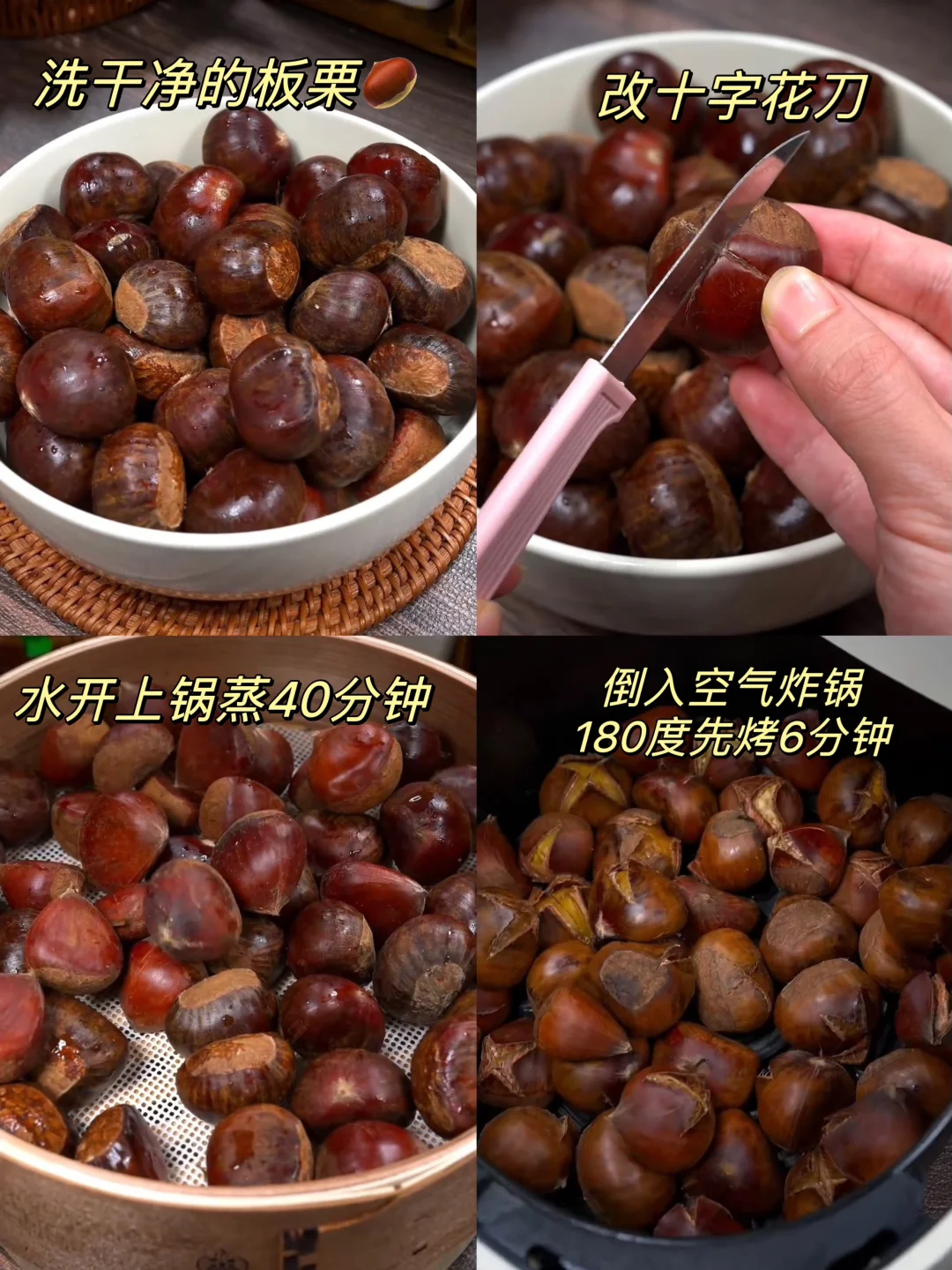 秋天就要吃糖炒栗子! ! 香甜软糯!!烤了一锅不够吃 做法贼简单!姐妹们快去试试 步骤如图~ 贼好脱壳!跟外面卖的一样好吃! !