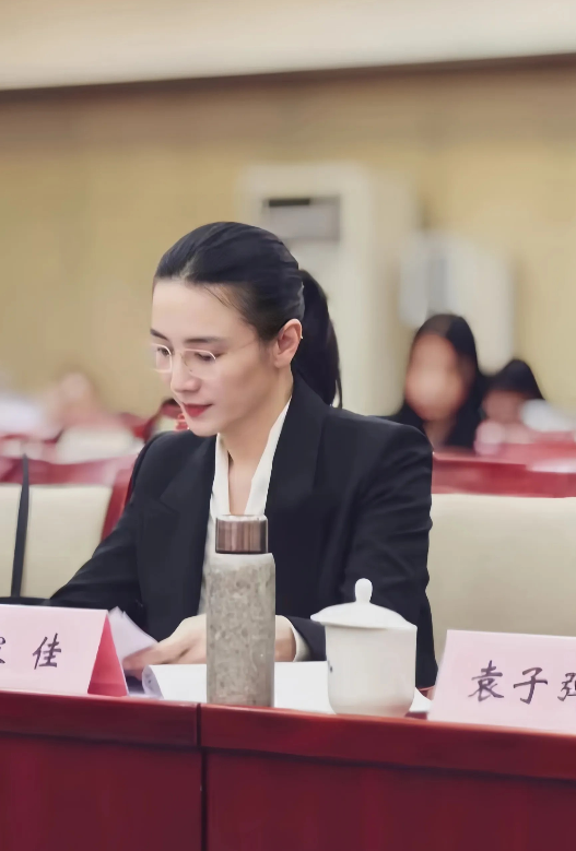 交流会上,宋佳一身黑色西装,内衬白色衬衣,搭配虽然简单,但给人的感觉干练、漂亮且高级。