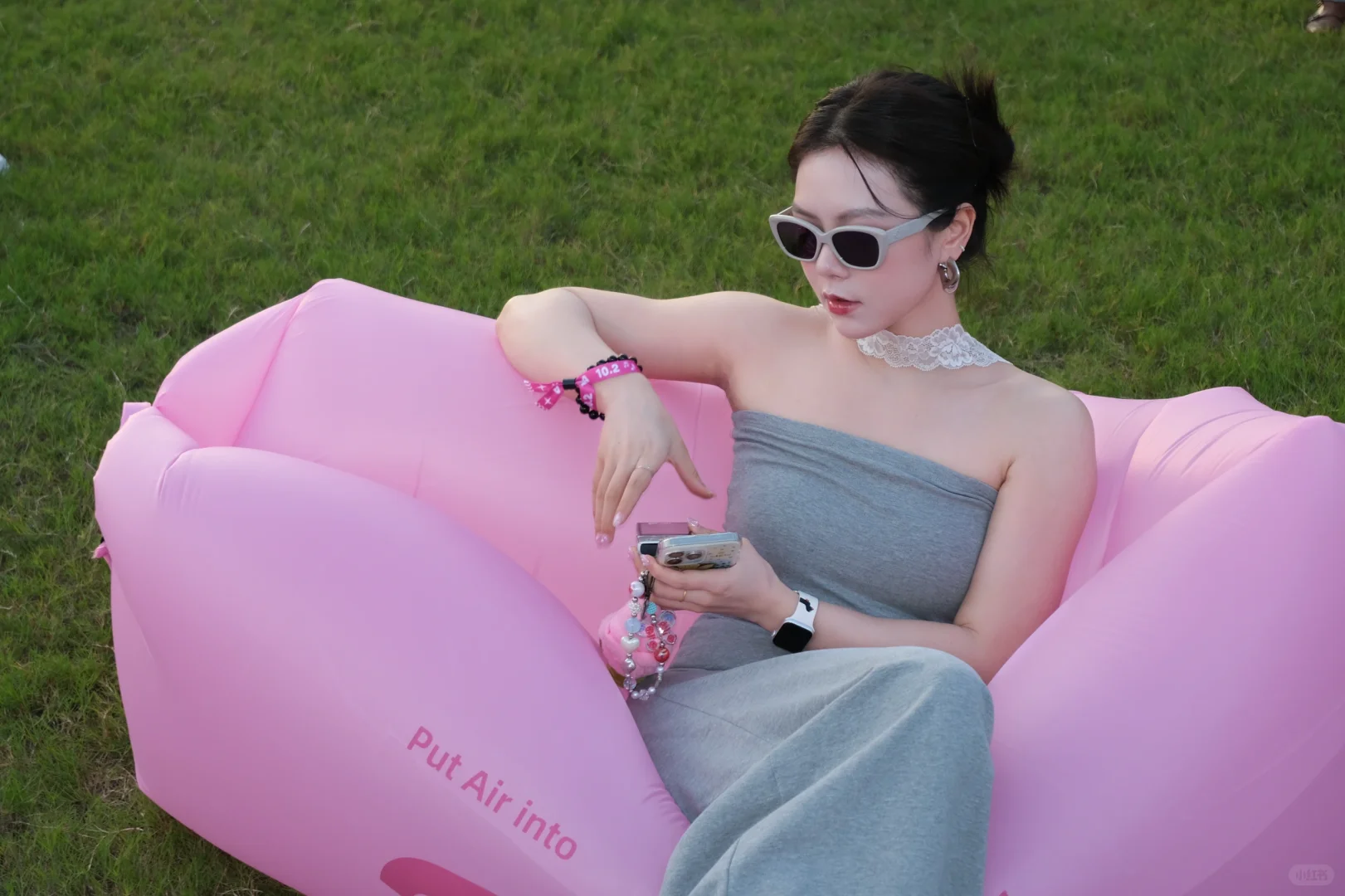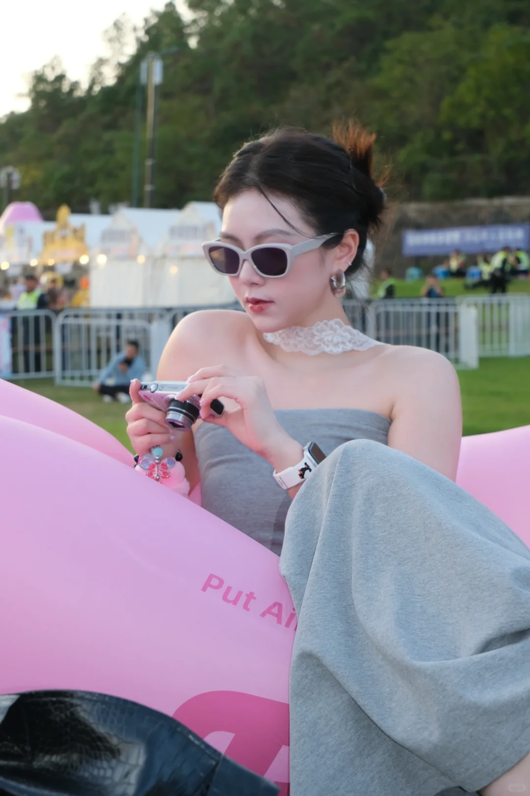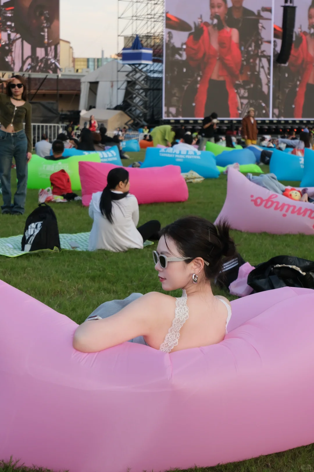 国庆和姐妹来音乐节啦~ 粉色的充气沙发🛋️真的好出片好时髦 📸相机:富士xt30/nc滤镜直出
