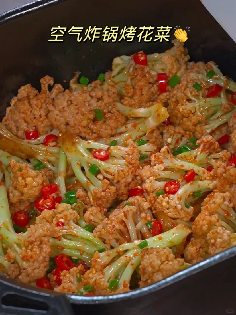 姐妹们有空气炸锅的一定要试试看!这个烤花菜! 做法步骤在图上⬆️ 烤花菜绝了!低脂爆 好吃减脂期烧烤自由!!! 又香又辣!!嘎嘣脆减脂期也能吃烧烤了!! 这个做出来真的很好吃!就是烧烤摊的味道! 虽然热量很低!但真的真的很好吃! 不管你减肥不减肥!都可以试试看!