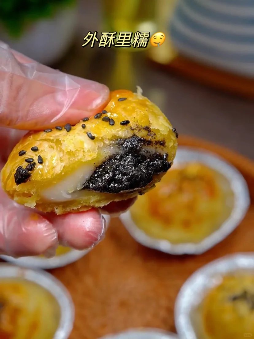 答应我,有空气炸锅的都去试试这个! 这个做法为什么我没有早点发现! 步骤:如图⬆️ 吃起来外皮酥脆,里面软糯香甜,糯叽叽 而且咬开,汤圆黑芝麻还会流心爆浆哦~ 家里有剩的蛋挞皮和汤圆的姐妹,试试看