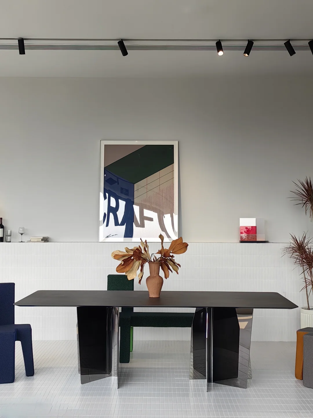 连续规整排列的蓝色瓷砖,于展厅中央连成一片,空间显得自由流畅且充满活力。将色彩注入日常,不同颜色的家具与周围环境自然搭配,无论是鲜艳的还是柔和的色调,都能展示它的独特魅力,激发我们的创意灵感,在不经意间发现家居布置的新可能。
