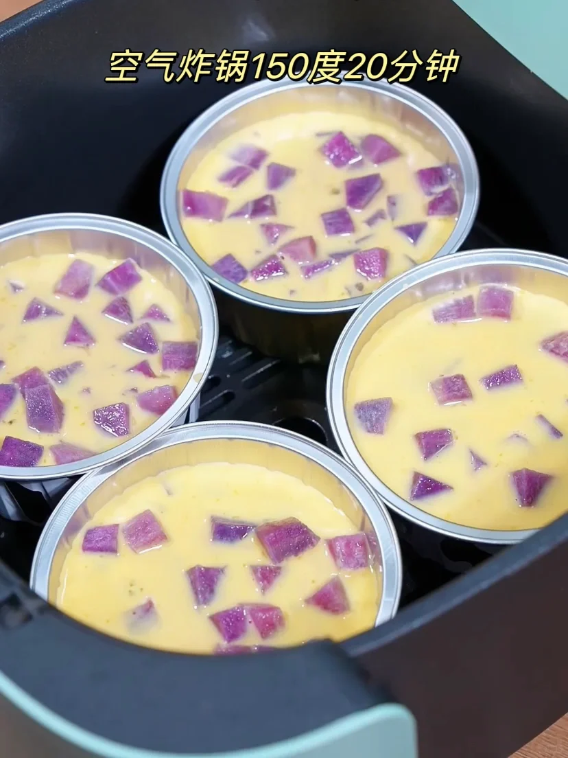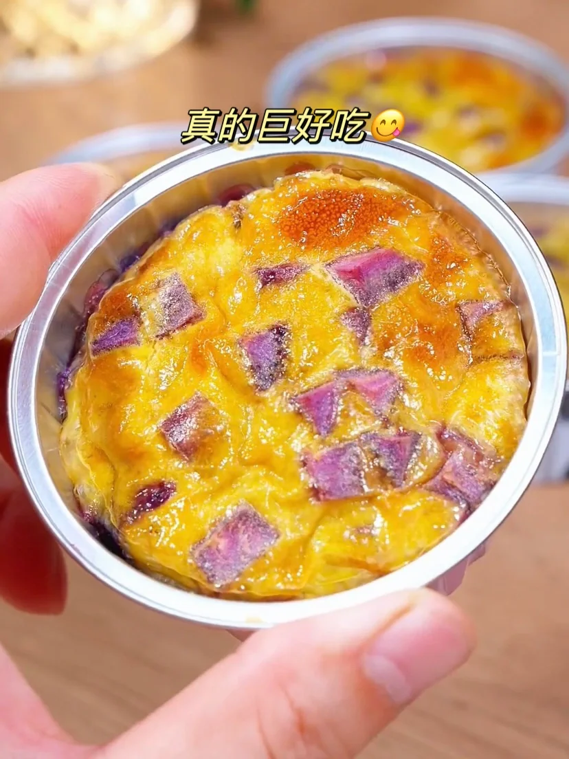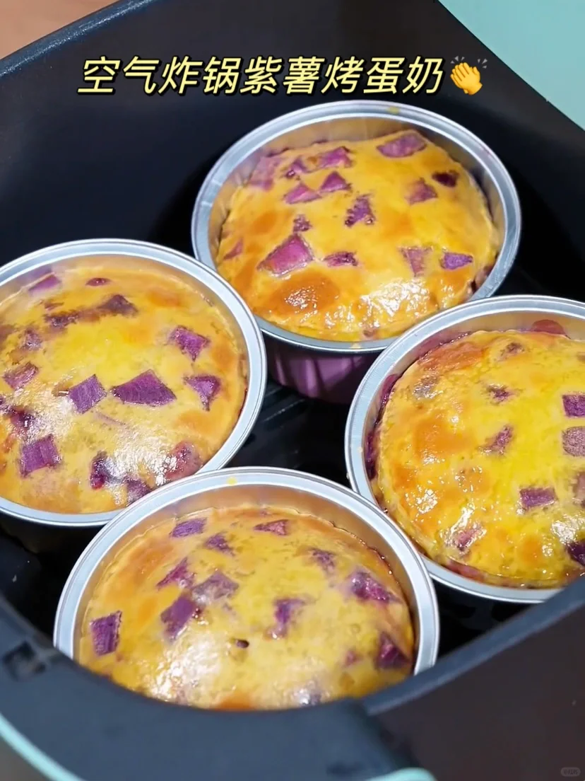 如果你有空气炸锅 紫薯丁烤蛋奶👏一定要安排 口感细腻香甜,奶香味十足,太好吃了! 做法非常简单,步骤在图上⬆️谁做谁知道! !
