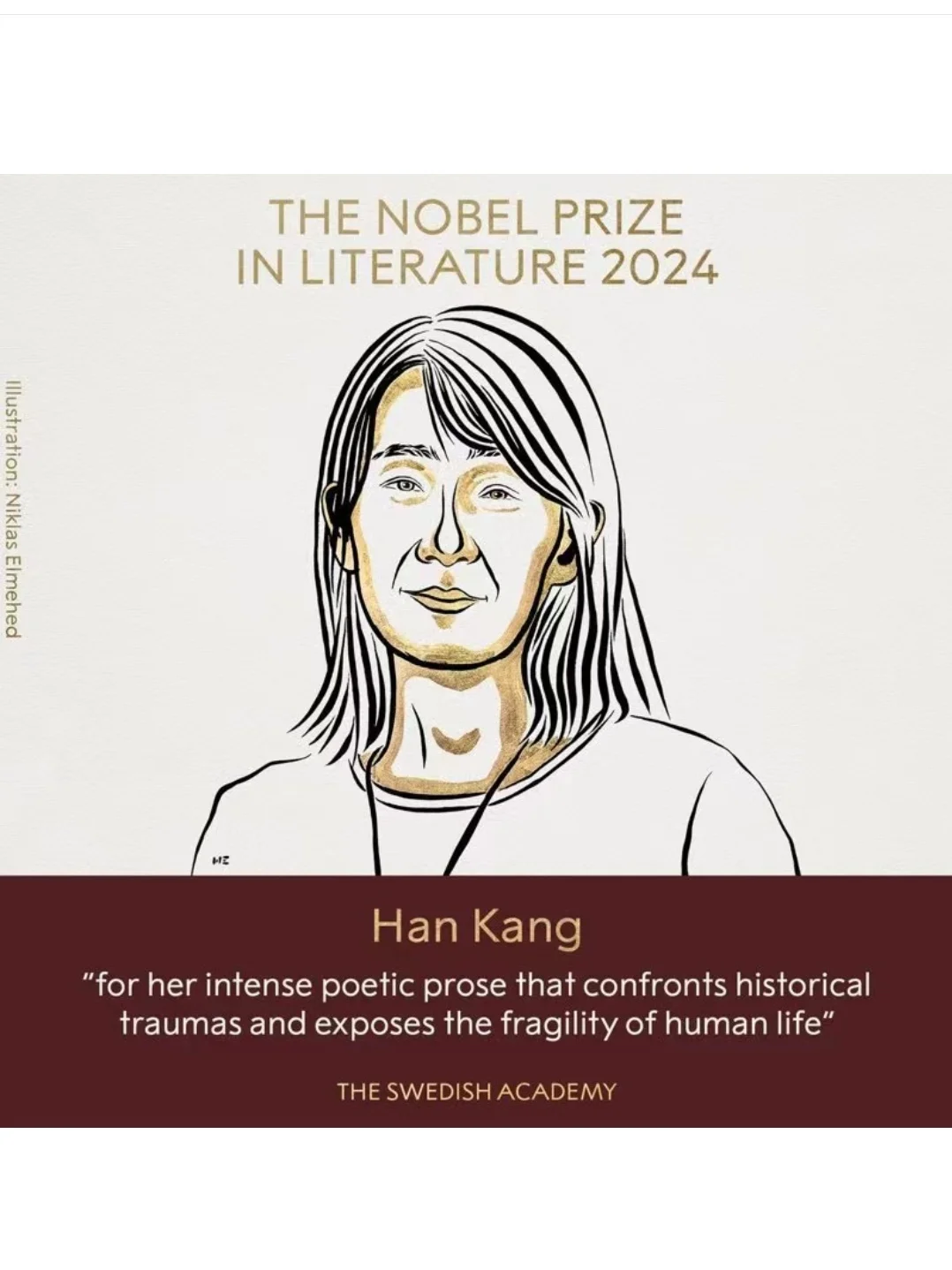 2024年的诺贝尔文学奖已公布,是来自韩国的女作家韩江。