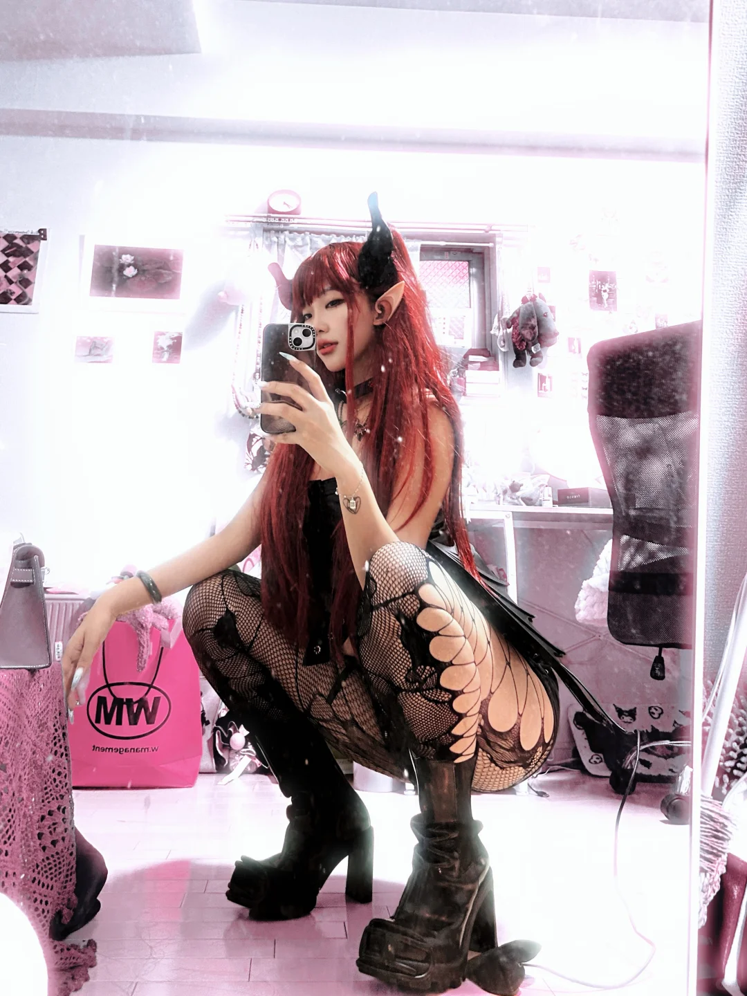我一年一度最爱的节日要来了!! 每次都会精心打扮[皱眉R][皱眉R][皱眉R][皱眉R][皱眉R] 这次打算出魅魔 还不是完整版~请期待31号吧! 假发➕耳朵➕翅膀➕尾巴都是喜多川海梦对cos服 衣服裤子自己随便买的~靴子炒鸡好看!是diesel的新品~一下子增高10cm