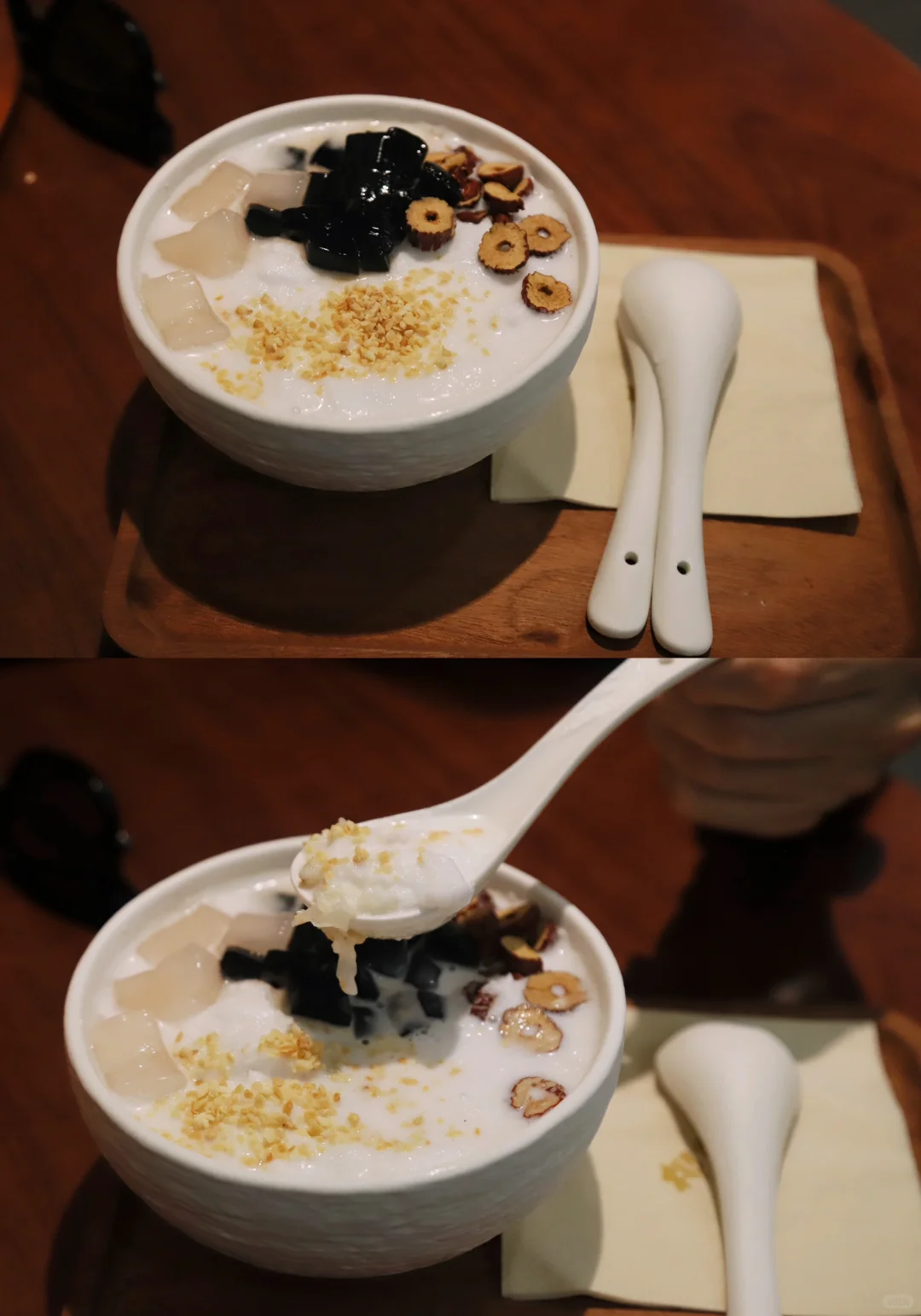 三家店都在鸿寿坊附近 第一家:Ms.Juan城市蛋卷 鸿寿坊内1楼。蛋卷外皮很酥,棉花糖🍬内陷可以拉丝!这种外脆内q弹的口感很难不爱。 第二家:大胡子冰可可 来自泰国的快闪店!鸿寿坊星巴克对面。很可爱!以胡子🧔🏻长度区分可可浓度!冰可可十分浓郁丝滑! 第三家:椰岛湾·清补凉 来自海南的夏日甜品。满满的料!椰奶和仙草清清爽爽的把人带到海边🥥。吃腻了广式甜品,想喝下海南甜品的冲。