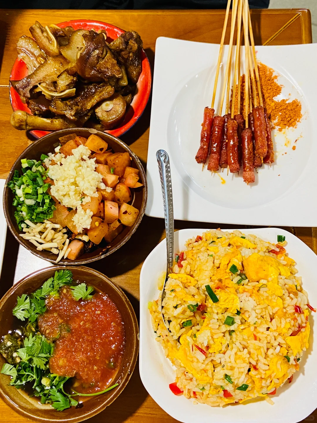 还有经典🍳糟辣椒蛋炒饭、绿豆冰沙、玫瑰冰粉等等……老人小孩都爱吃