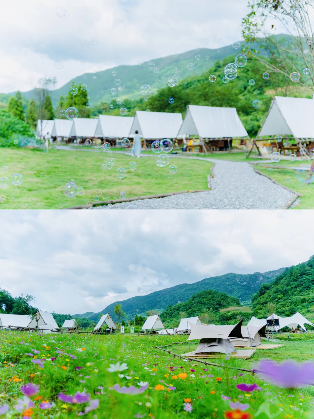 和其他营地不同的是这里有蓝天、草地、野花