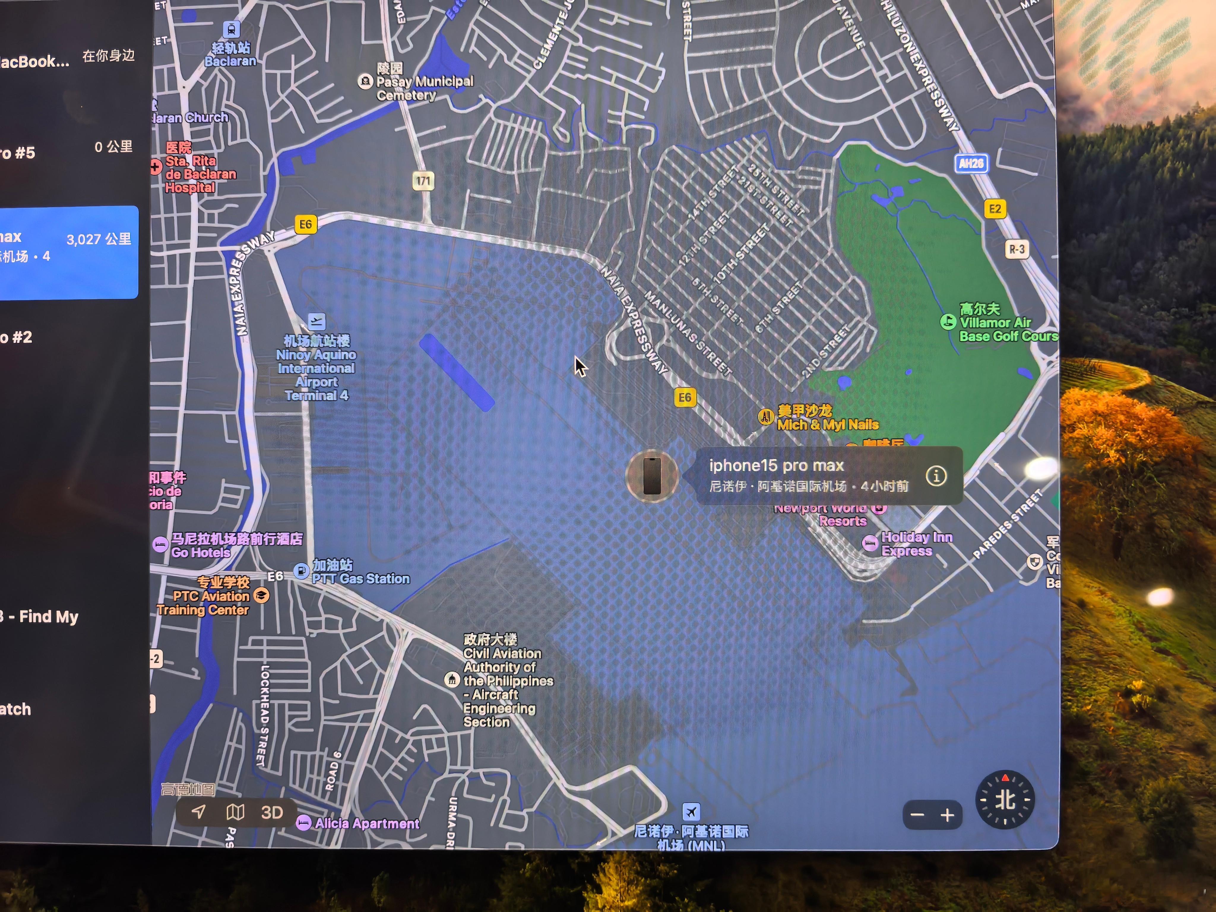 我把iphone丢在了荷兰航空的航班上,目前定位在这里,不知道是在乘客手里还是机