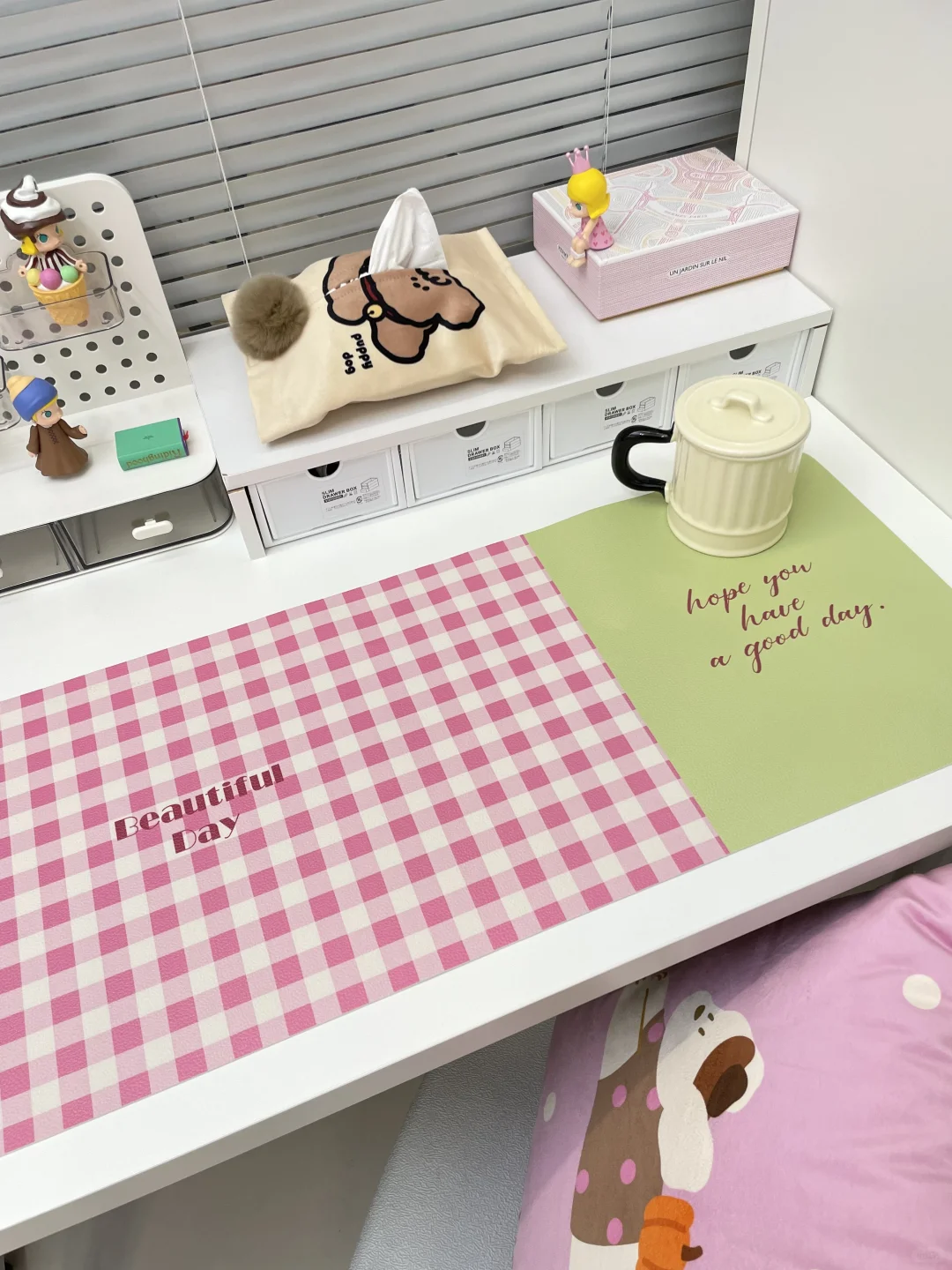 💗💚书桌布置|粉绿配色好韩系!