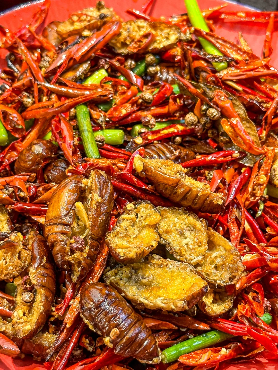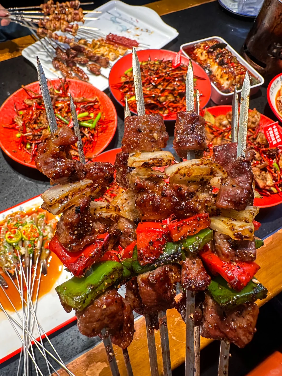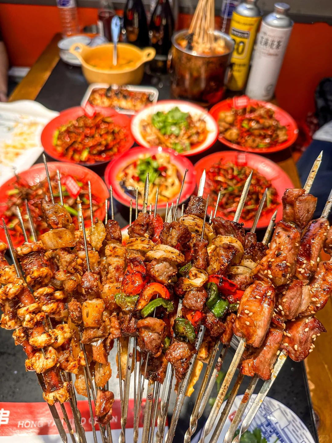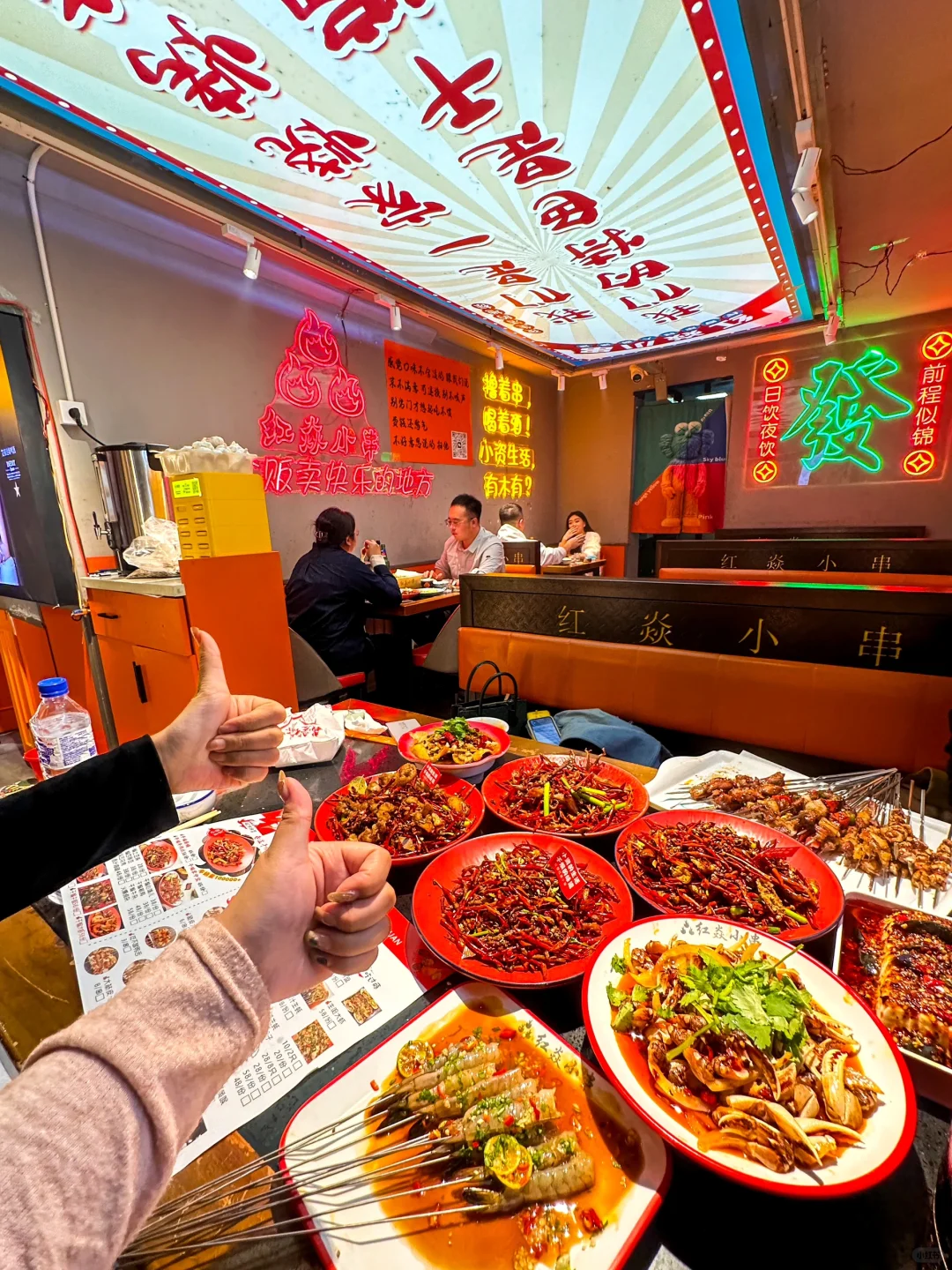 多少次来桂林路就是为了这口干煸蚕蛹!! 酥酥的 根本不用吐壳 好香好香… 干煸鸭舌、干煸牛蛙也不错👍 他家串也是个大实惠 牛肥瘦、筋皮子、骨髓…都是必点 尤其喜欢黑胡椒牛肉 彩椒🫑很解腻 女孩子记得来两串烤面包 不会特别甜 有股蛋香 巨好吃😋 重点是‼️营业到凌晨5点 酒鬼表示太爱了 平时建议大家早点去 饭点人是真的有点多哦