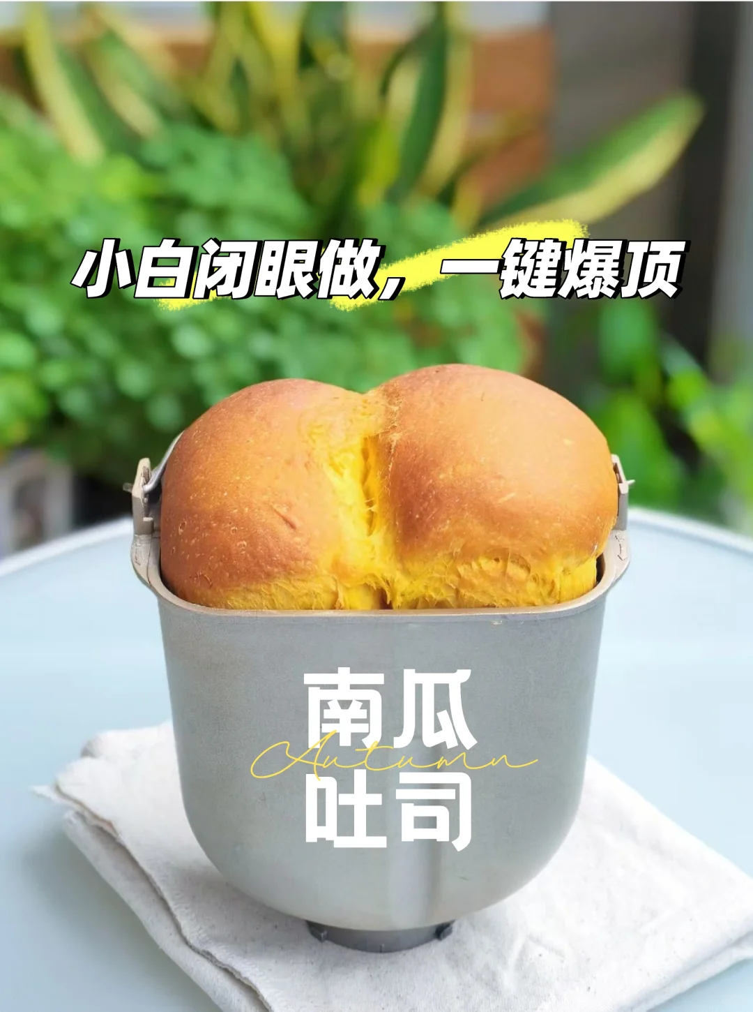 [一R] 请预留水量或奶量,不要一下子倒入,要根据面粉吸水性,面包机性能以及室温进行调节,特别是这里的南瓜泥含水量可能区别很大,一定要控制好奶量。