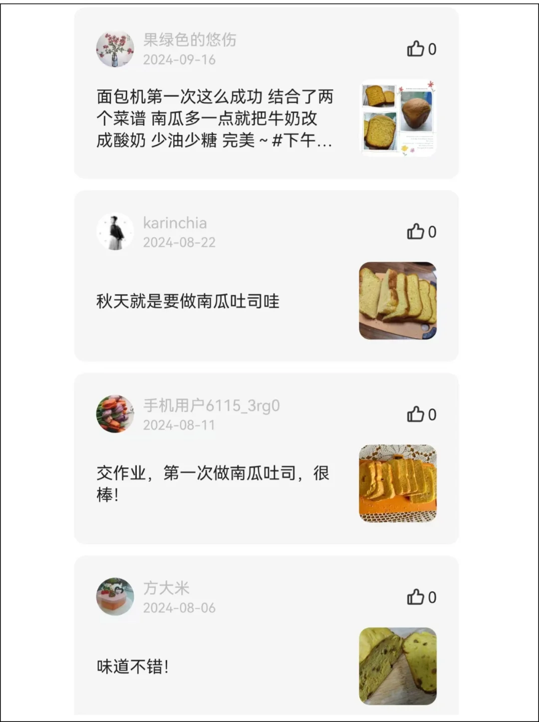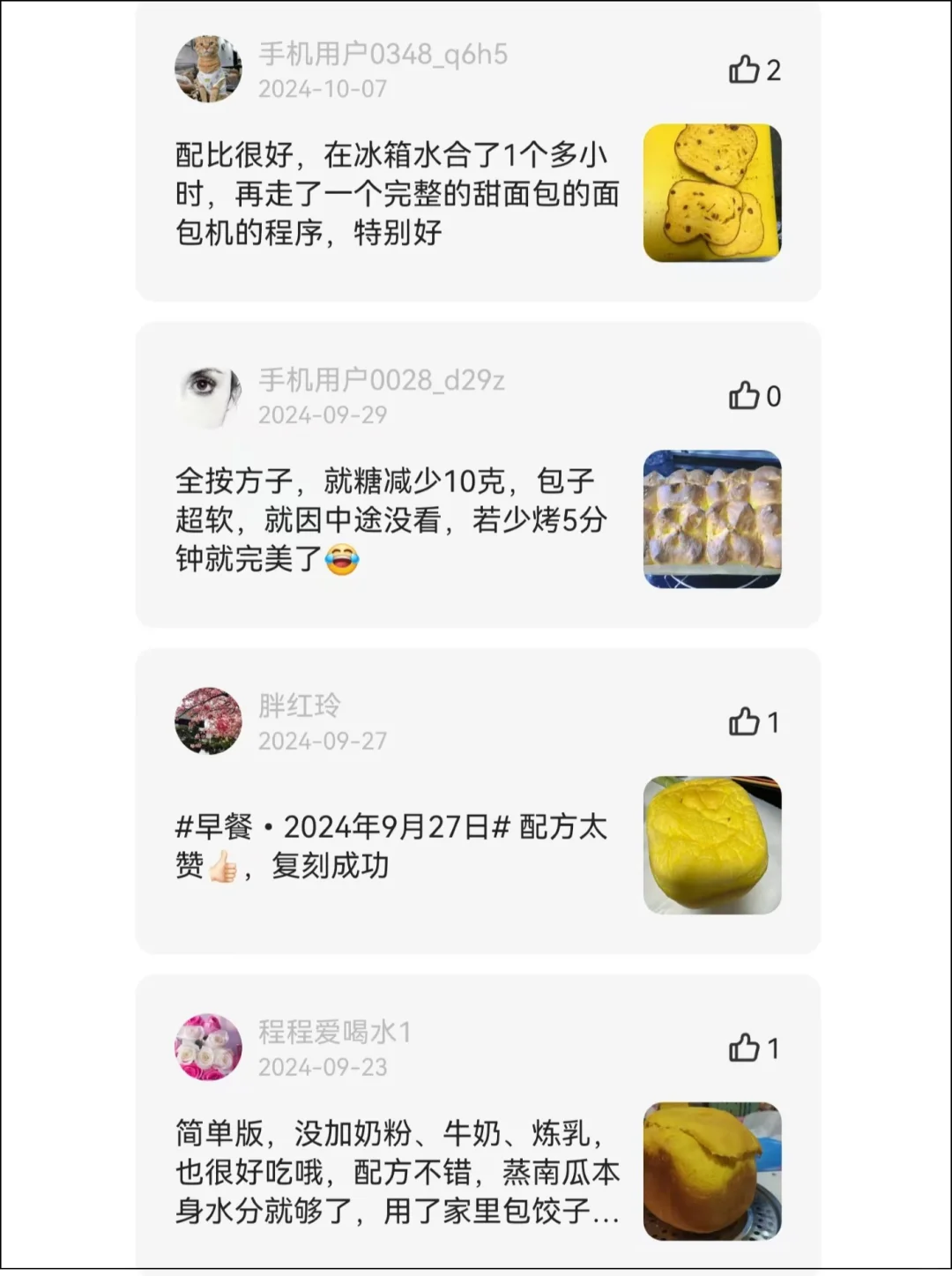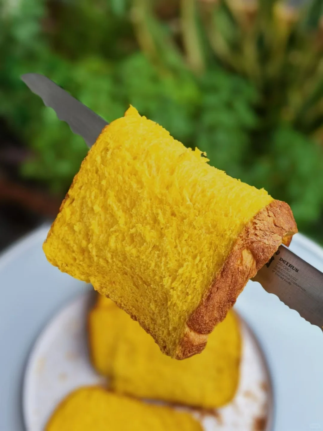 [庆祝R]这个南瓜吐司是我四年多前就发布的一个高分菜谱,直到现在,还有姐妹不停地在跟做,看看最后三张附图就是最近姐妹发来的作业,金灿灿的外表,让人食欲大增,细腻绵柔的组织,容易拉丝,口感棒棒哒!
