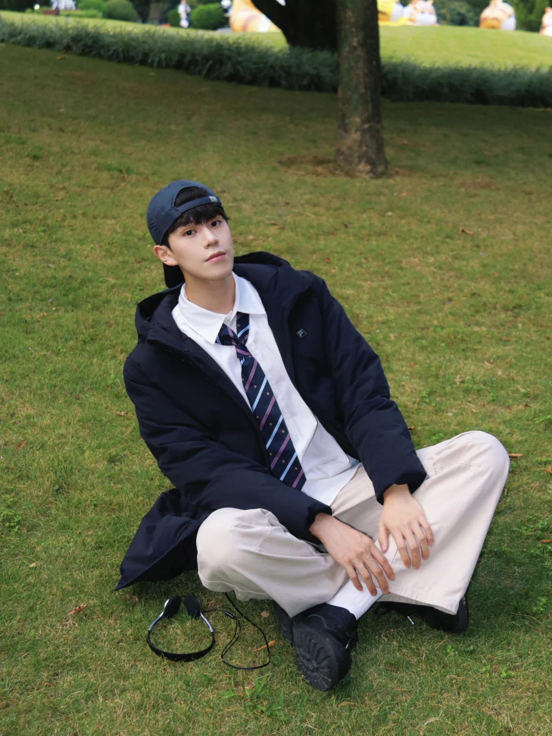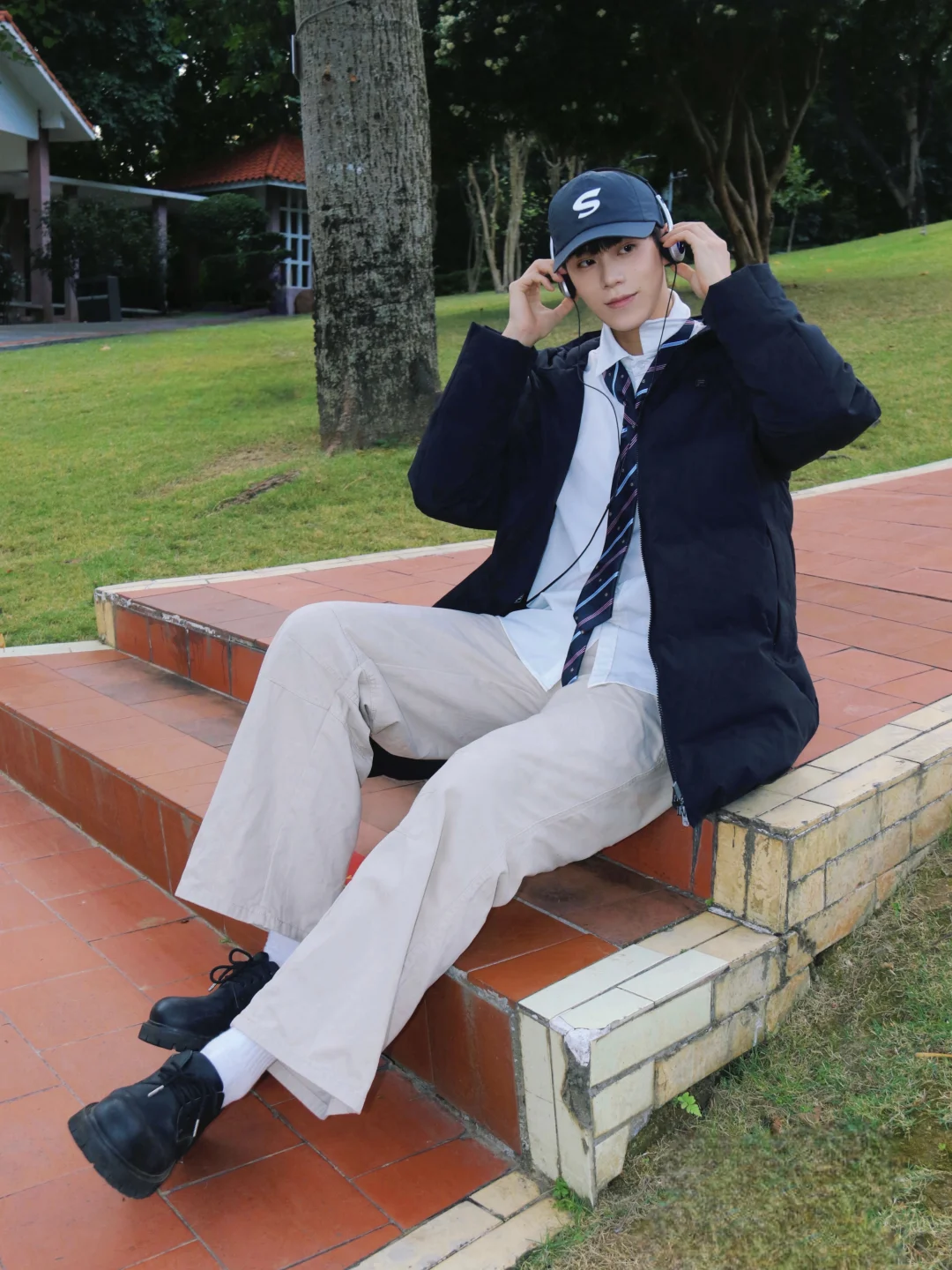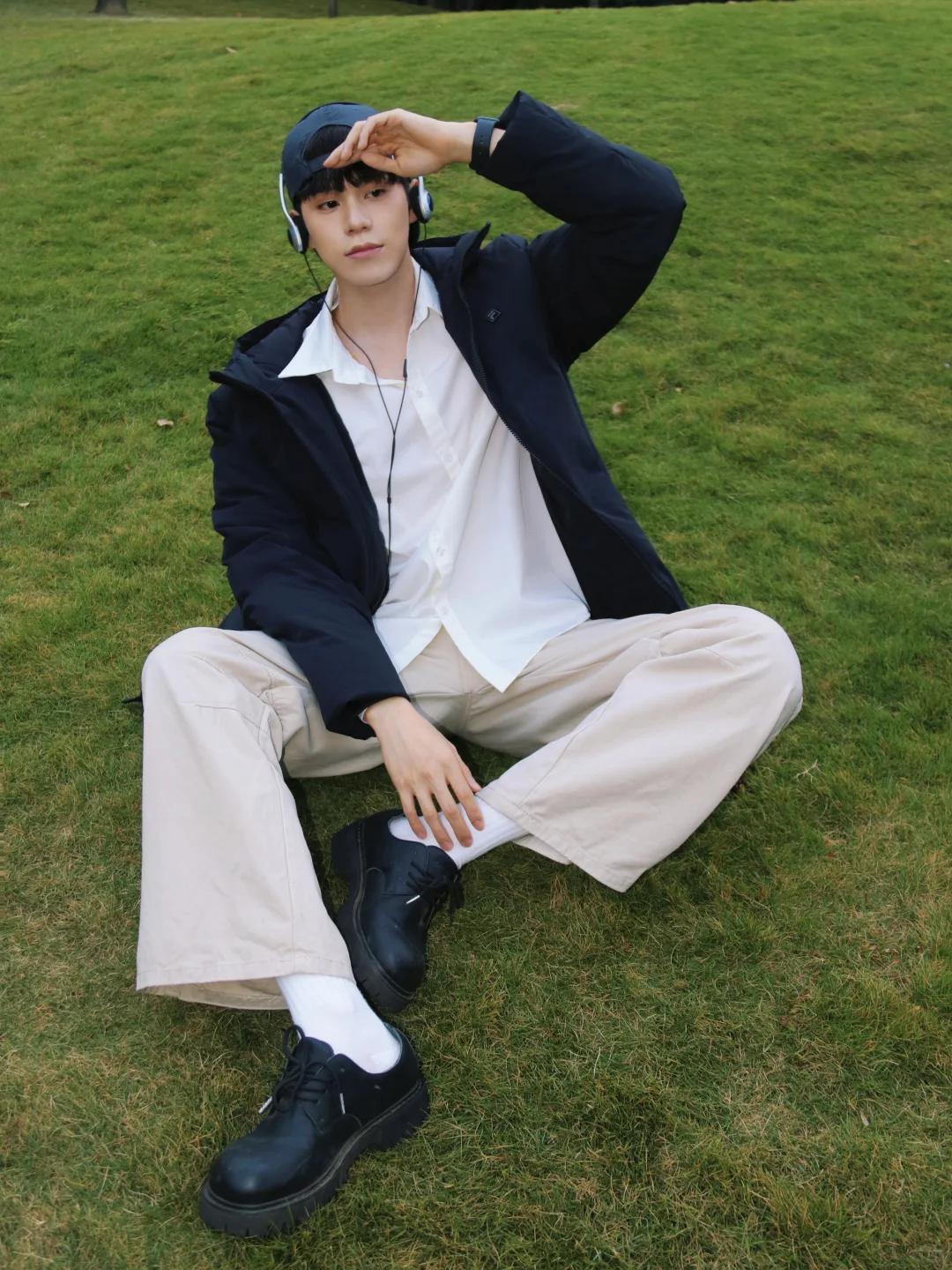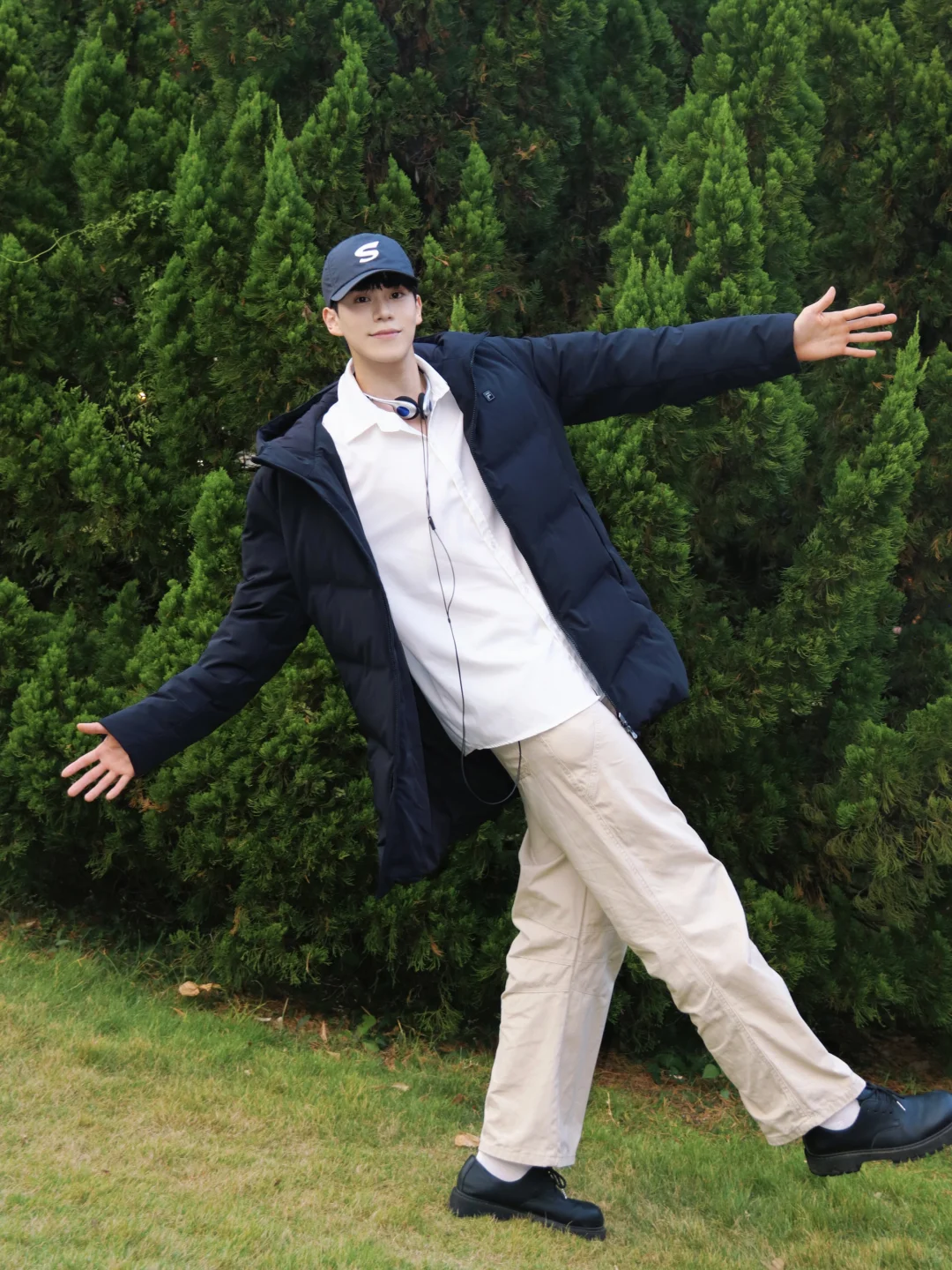 白衬衫+休闲裤+FILA高质VC羽绒,
