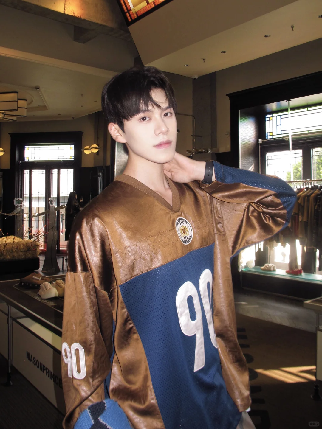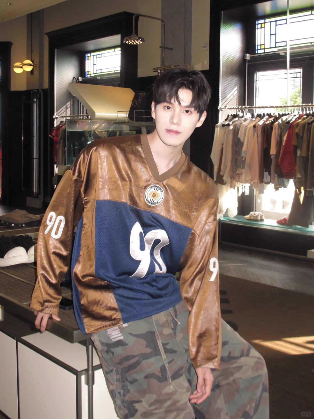这上衣的棕色是皮质吗?好有质感啊咚咚~帅