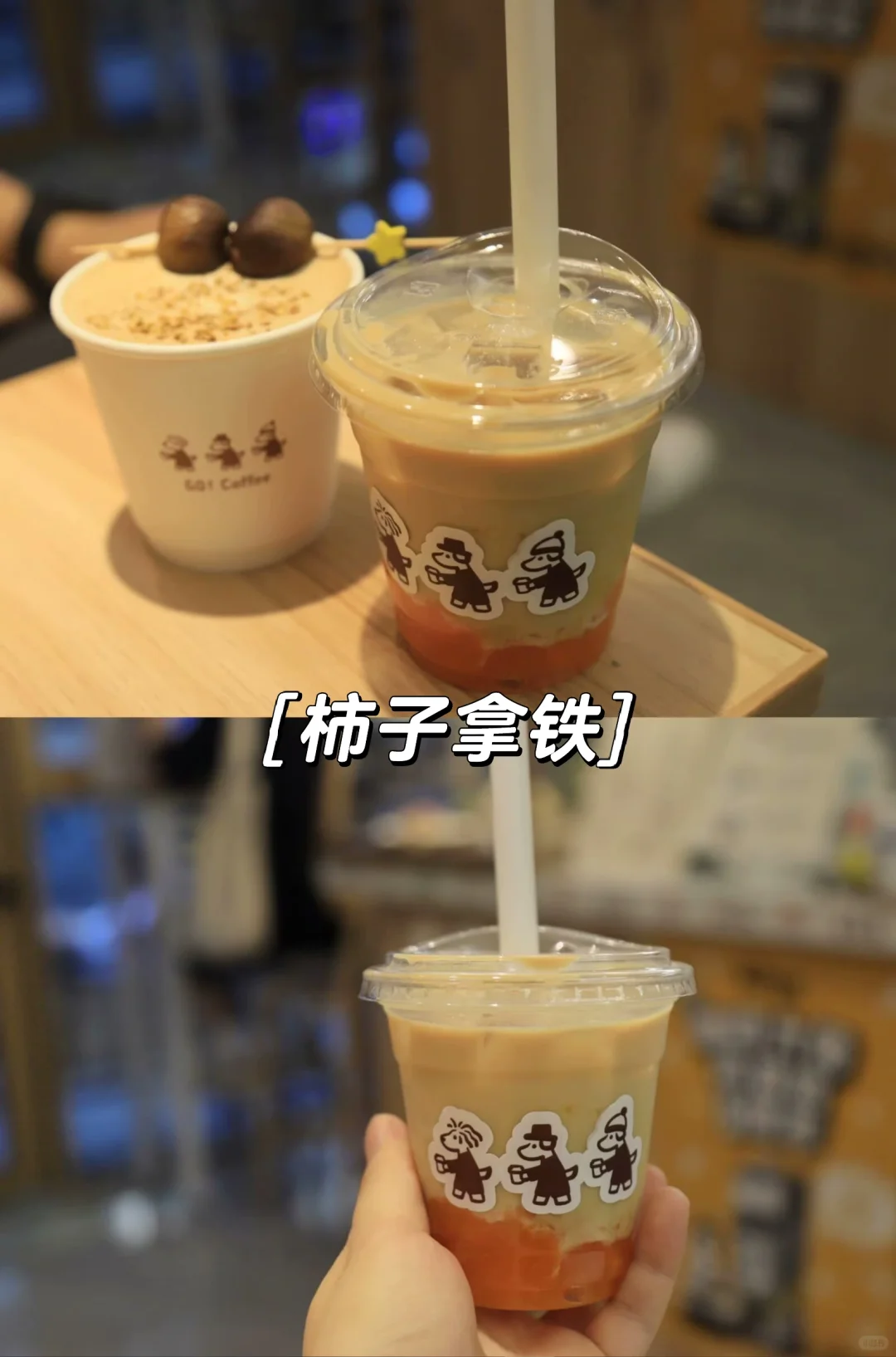 拿铁和柿子真的好搭!柿子果肉甜甜糯糯的简直就是咖啡里的适配珍珠。
