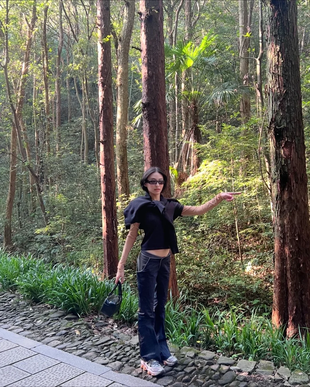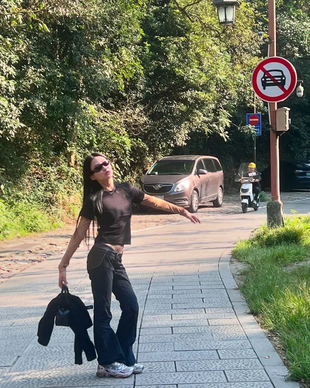 刘浩存用自己证明:修身裤比宽松裤好看太多。