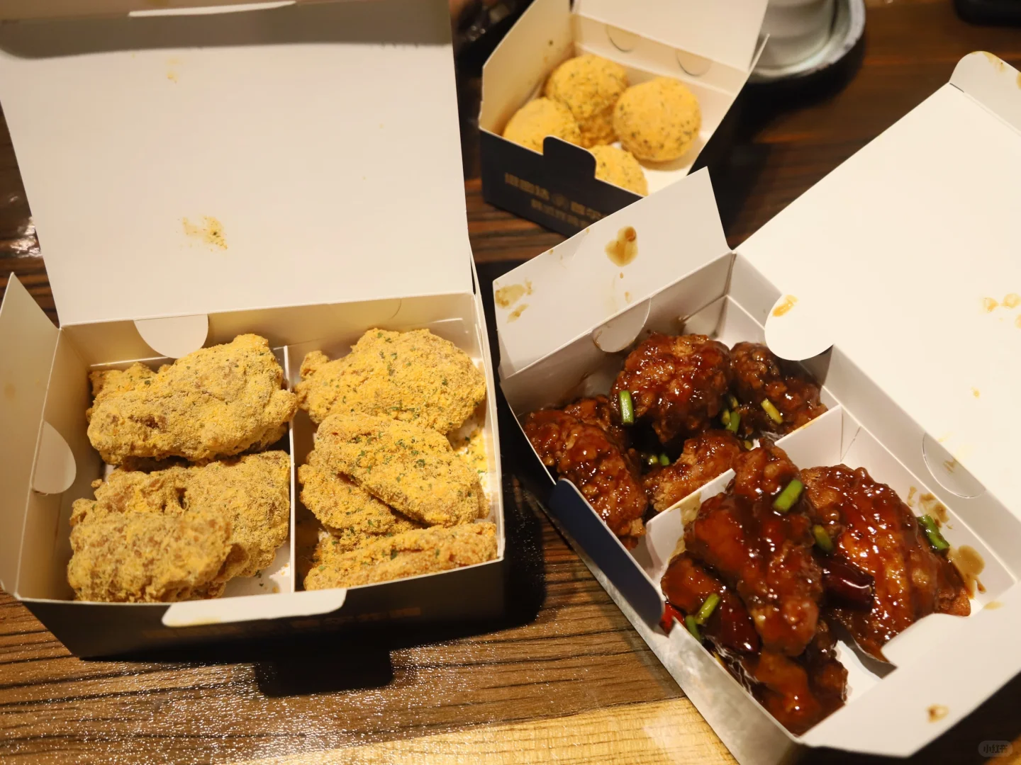 最近在韩国街附近新开了一家韩国炸鸡店🇰🇷 📍乐坊虹井生活广场1楼喜姐炸串旁 [赞R] 炸鸡外皮酥脆,鸡肉鲜嫩多汁。芝士口味裹的粉很满足,泰式甜辣口味也是酱汁超多。除了炸鸡以外芝士球意外的超级好吃! - 就在韩国街附近!终于有新的炸鸡店啦!