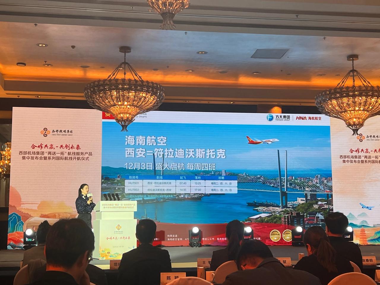 12月3日北京时间07:45,海南航空HU7901航班从西安咸阳国际机场顺利起飞,标志着西安—符拉迪沃斯托克航线正式启航。该航线是海南航空继大连—符拉迪沃斯托克、北京—符拉迪沃斯托克后开通的第三条中国直飞符拉迪沃斯托克的航线。 该航线的开通,将为中俄两国旅客搭建起更为便捷的空中桥梁,进一步加深中俄两国经贸往来,促进两国间的人文交流。 据悉,西安-符拉迪沃斯托克航线每周执行四个往返航班,班期为每周二、四、六、日。去程航班计划07:40从西安咸阳国际机场起飞,当地时间13:25到达符拉迪沃斯托克国际机场,飞行时长3小时45分钟;返程航班计划当地时间14:35从符拉迪沃斯托克国际机场起飞,17:15到达西安咸阳国际机场,飞行时长4小时40分钟。