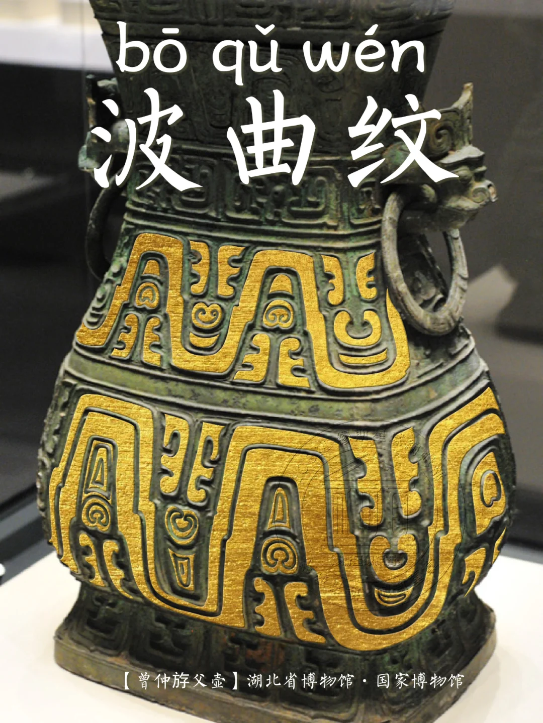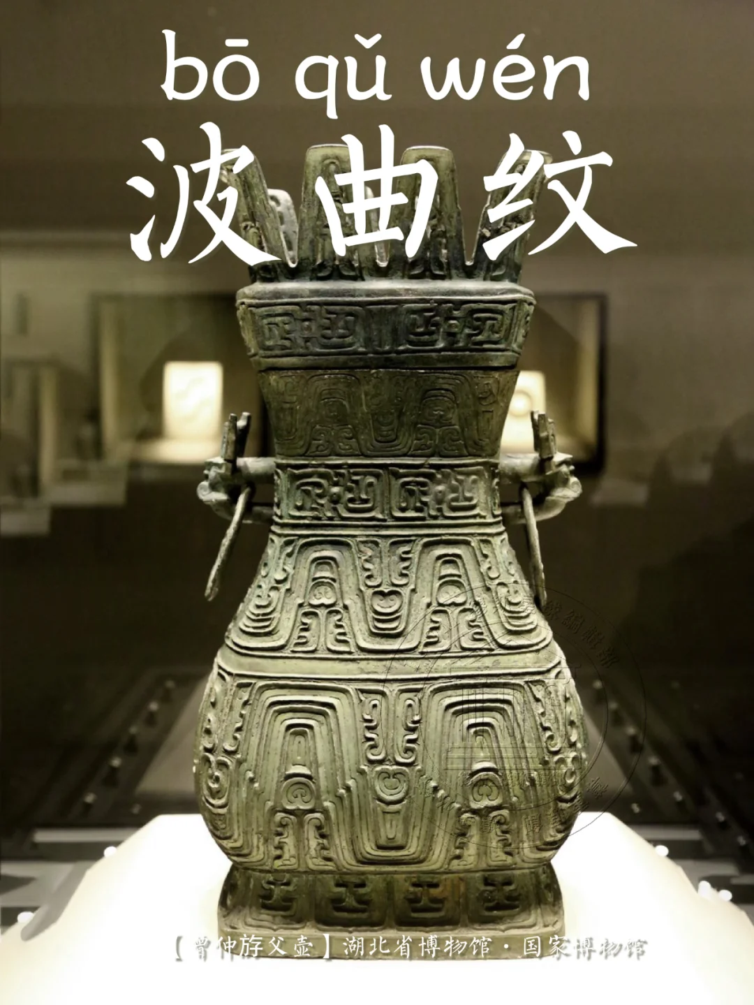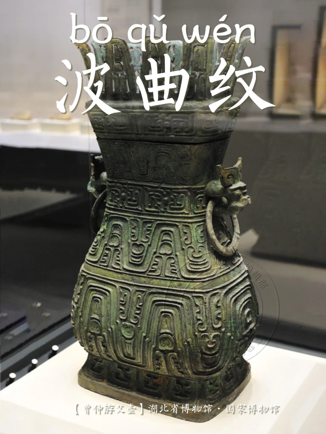 📍 波曲的中腰常有一兽目或近似兽头形的突出物,波峰的中间填以两头龙纹、鸟纹、鳞片纹或其它简单线条, 整体状如一条波浪般起伏的宽带,波峰之间布有各种纹饰。有学者认为是从龙纹变化而来,也有人把它列入几何类纹饰。