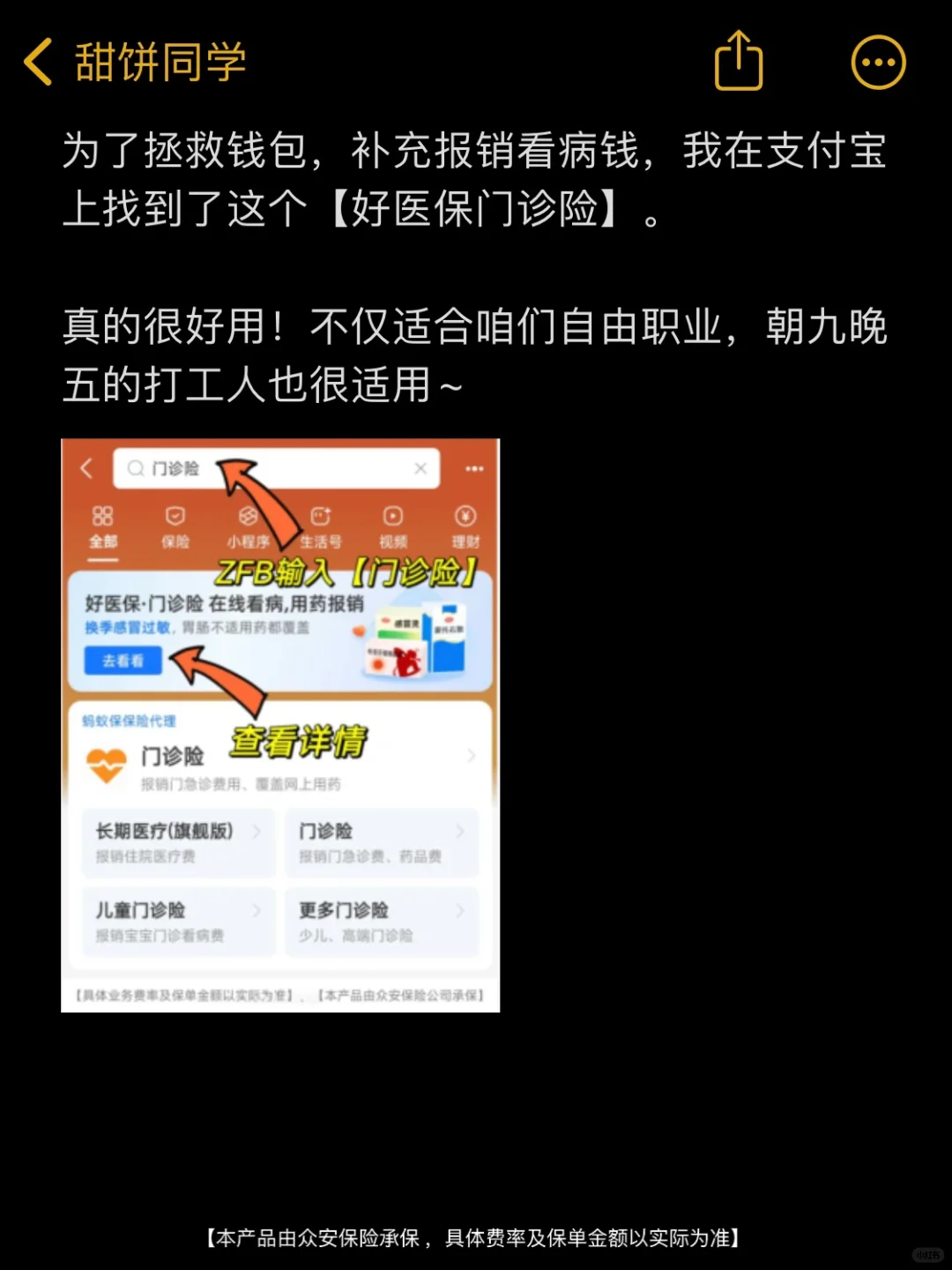 为了拯救钱包,补充报销看病钱,我在支付宝上找到了这个【好医保门诊险】。