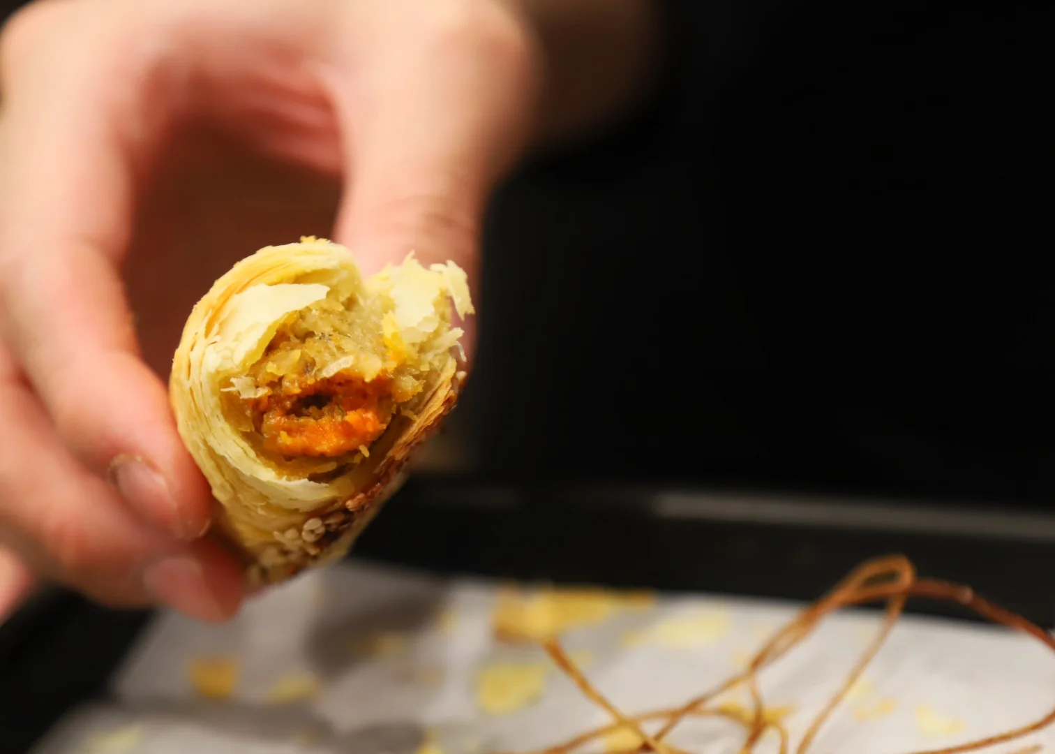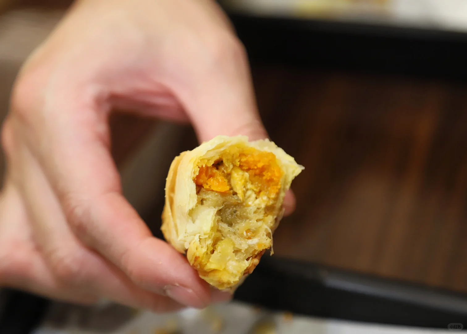 ❗甄嬛传里华妃娘娘最爱吃的点心照进现实啦 📍汤金方蟹黄酥 在静安寺附近 - 现点现烤,大概需要等待25分钟🕰️。 造型超级精致,像大闸蟹🦀的绑带 吃起来真的香迷糊了 起酥奶香浓郁层层酥脆,酥的掉渣 内陷蟹黄蟹粉用料很足,鲜味咸香 - 搭配茶水一个根本不够吃!