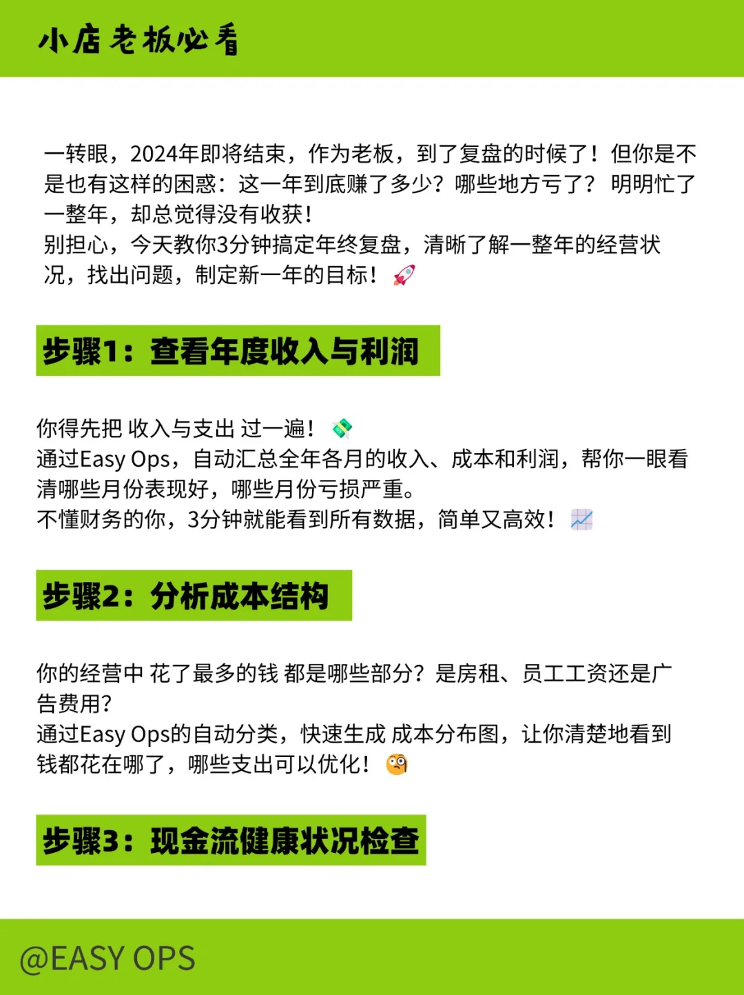 一转眼,2024年即将结束,作为老板,到了复盘的时候了!但你是不是也有这样的困惑:这一年到底赚了多少?哪些地方亏了?明明忙了一整年,却总觉得没有收获!