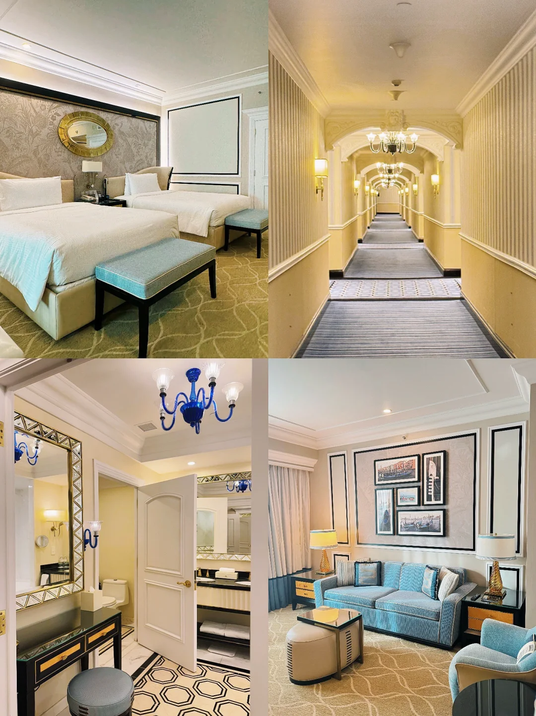 🏨入住的是威尼斯人,性价比很高,rmb1000+ 就可入住,房间很大,还有一个专门的化妆间,服务也很棒,有专门的发财车可以免fei乘坐!