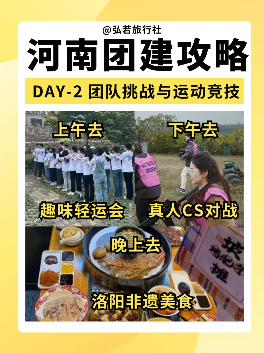 选择洛阳弘若旅行社,我们为您提供一站式的团建解决方案。从活动策划到执行,我们专业的团队将确保您的团建活动顺利进行,让您的团队留下难忘的回忆。