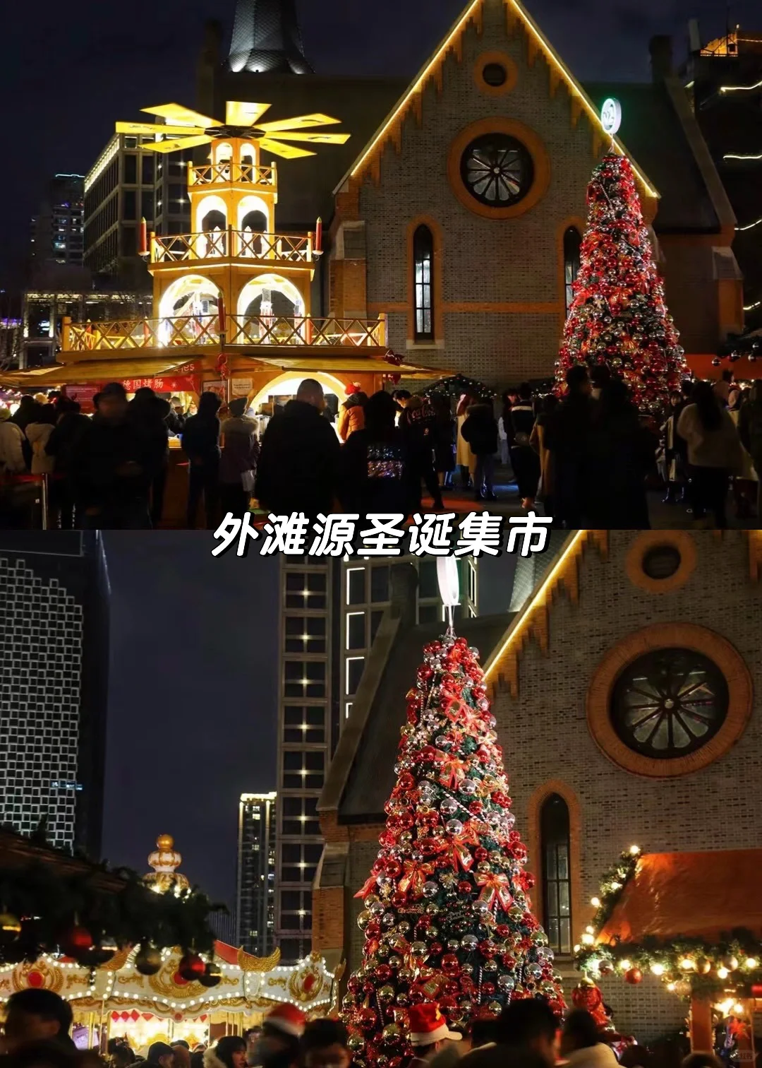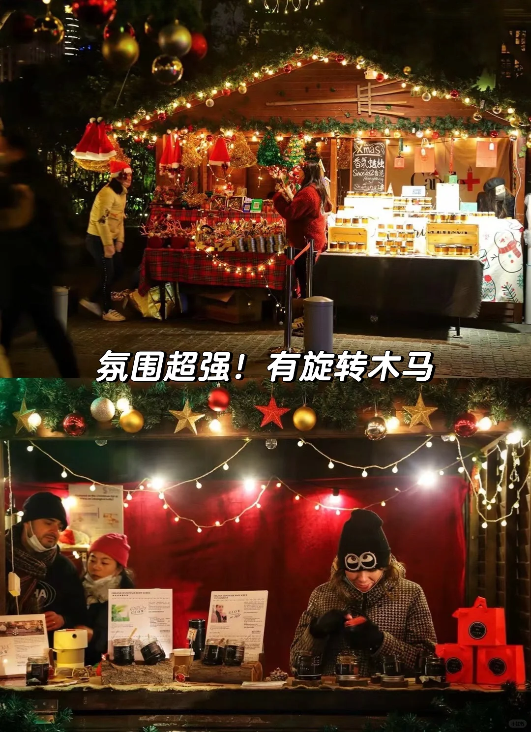 也是德国🇩🇪集市,坐拥西式建筑和外滩源教堂,仿佛置身国外,整体沉浸感最强。有圣诞树和旋转木马🎠,也有热红酒可丽饼小吃。门票30/40,人超级多。